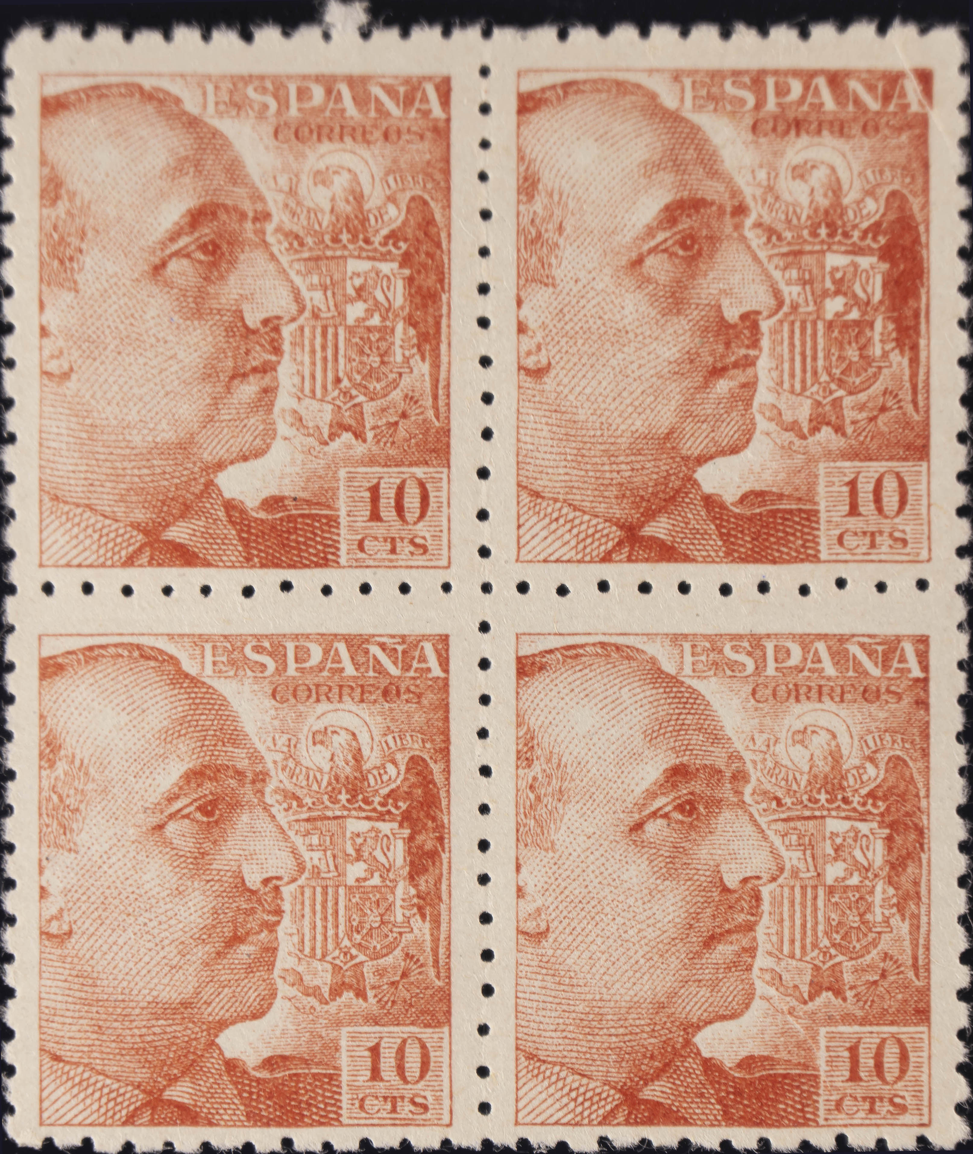 ★★ 920(4). 1940. 10 cts castaño naranja, bloque de cuatro. MAGNIFICO. Edifil 2020: +12 Euros