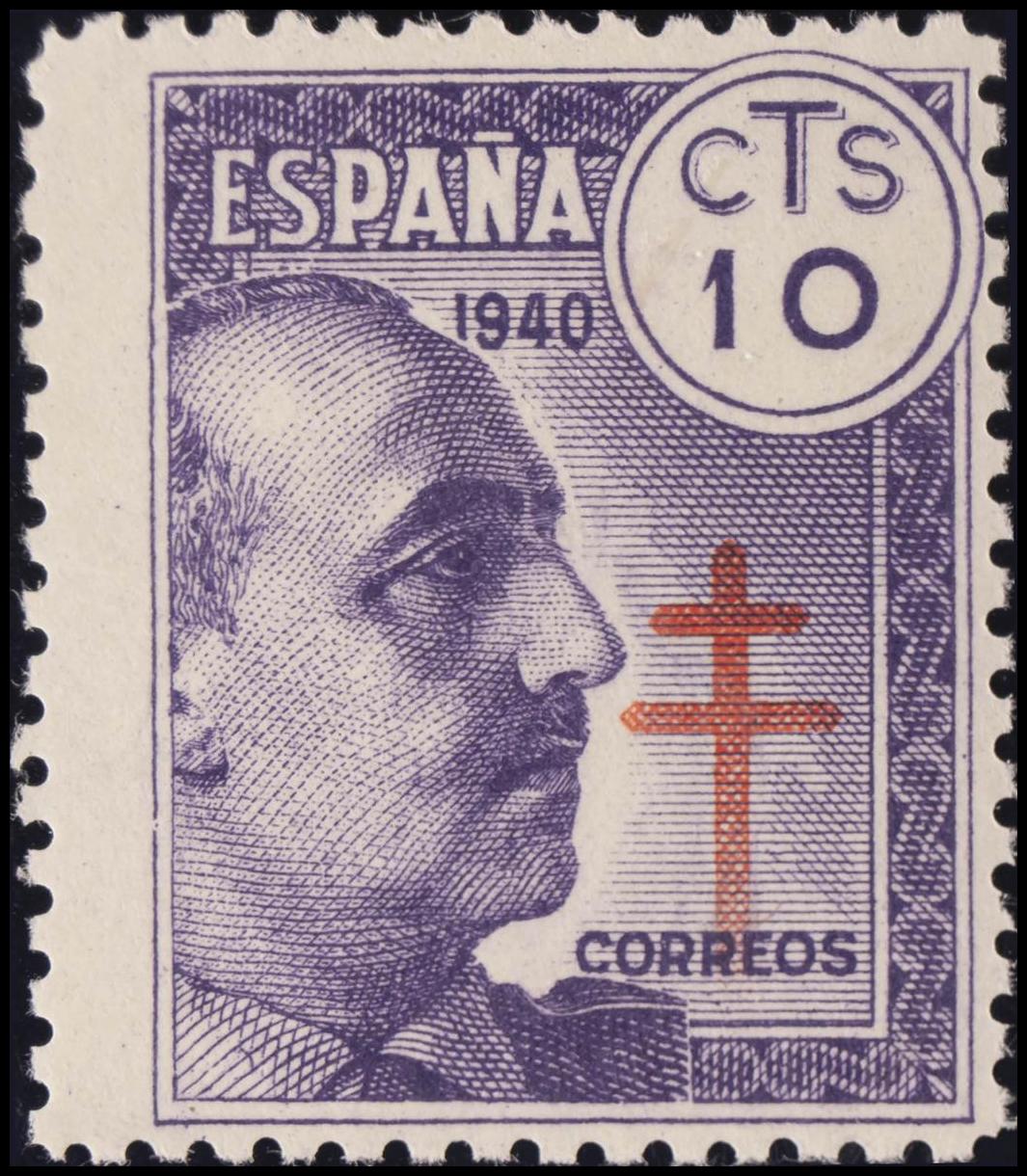 ★★ 936ic. 1940. 10 cts violeta. CALCADO AL DORSO. MAGNIFICO. Edifil 2020: +8,75 Euros