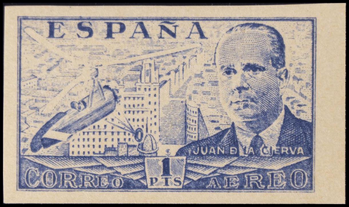 ★★ 944s. 1941. 1 pts azul, borde de hoja. SIN DENTAR. MAGNIFICO. Edifil 2020: 14,25 Euros