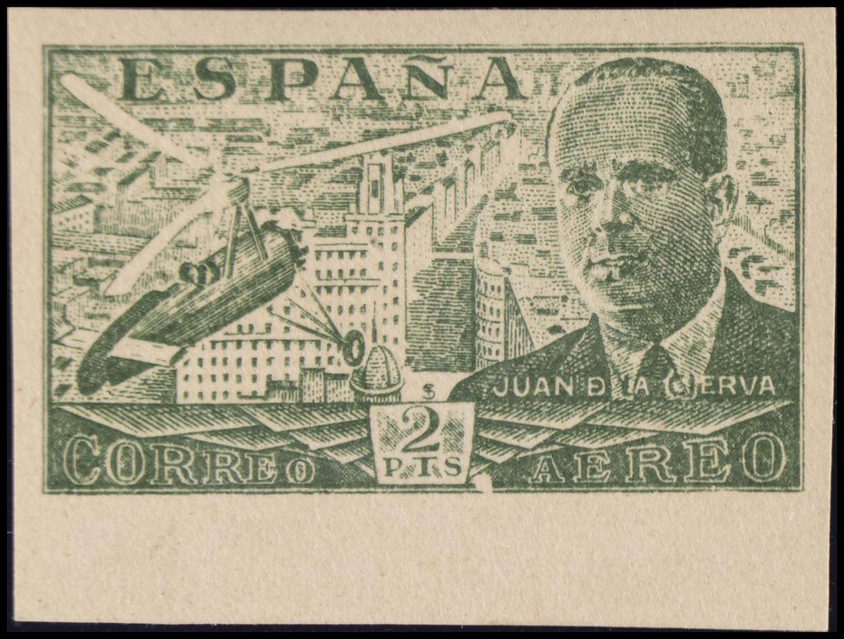★ 945s. 1947. 2 pts verde, borde de hoja. SIN DENTAR. MAGNIFICO. Edifil 2020: 33 Euros