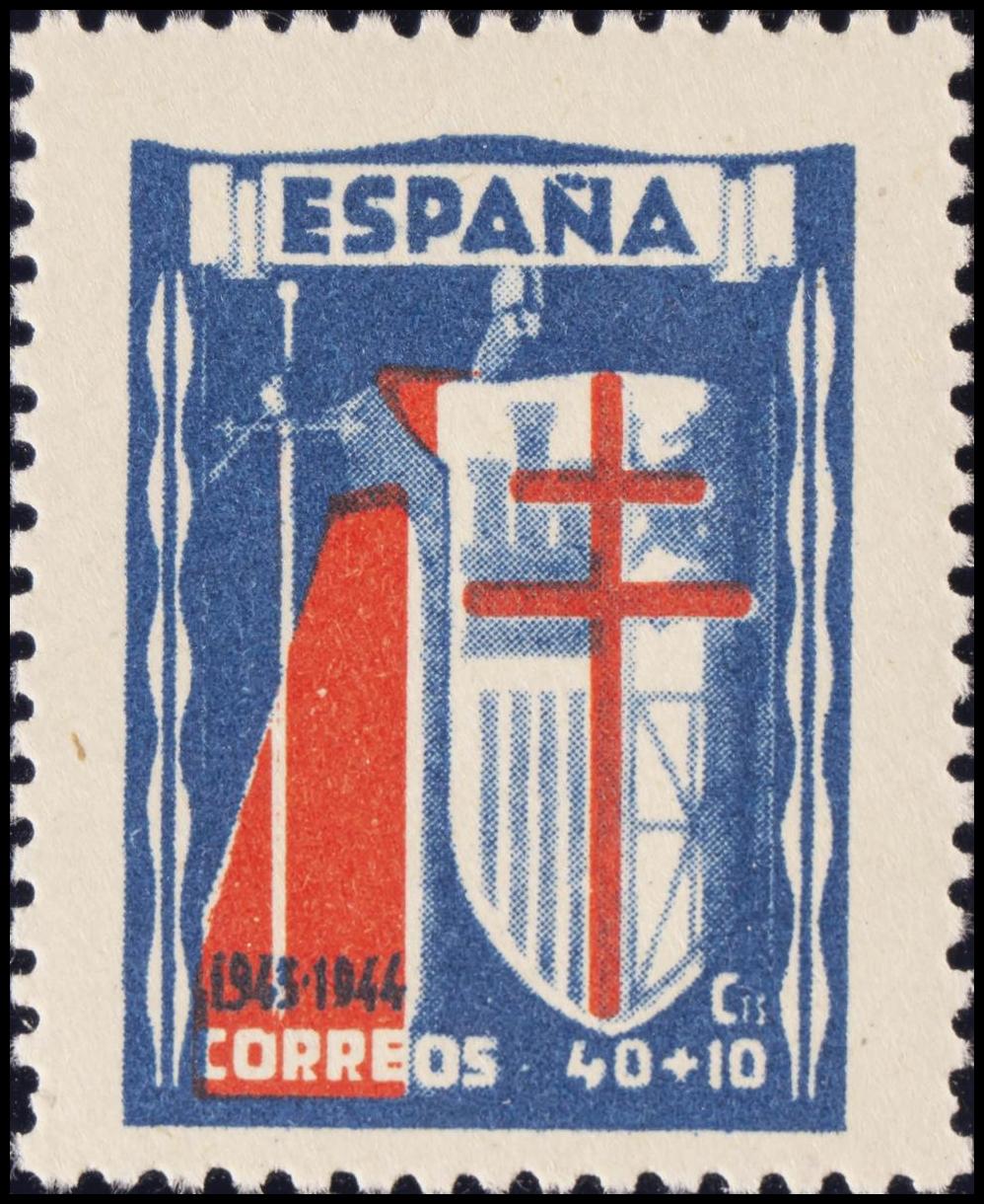 ★★ 972. 1943. 40 cts+10 cts azul y rojo. MAGNIFICO. Edifil 2020: 7 Euros