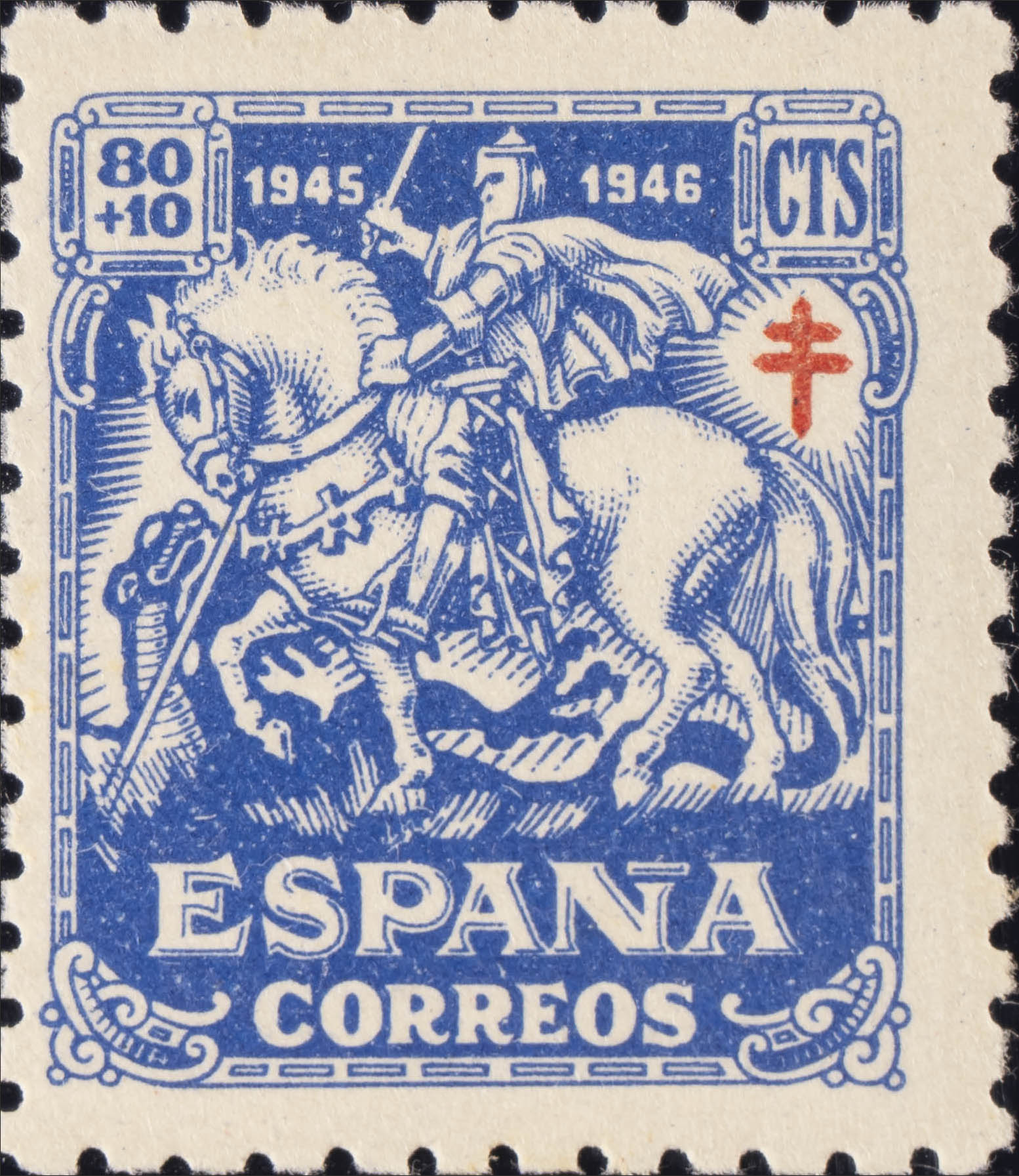 ★★ 996. 1945. 80 cts+10 cts azul. MAGNIFICO. Edifil 2020: 21 Euros