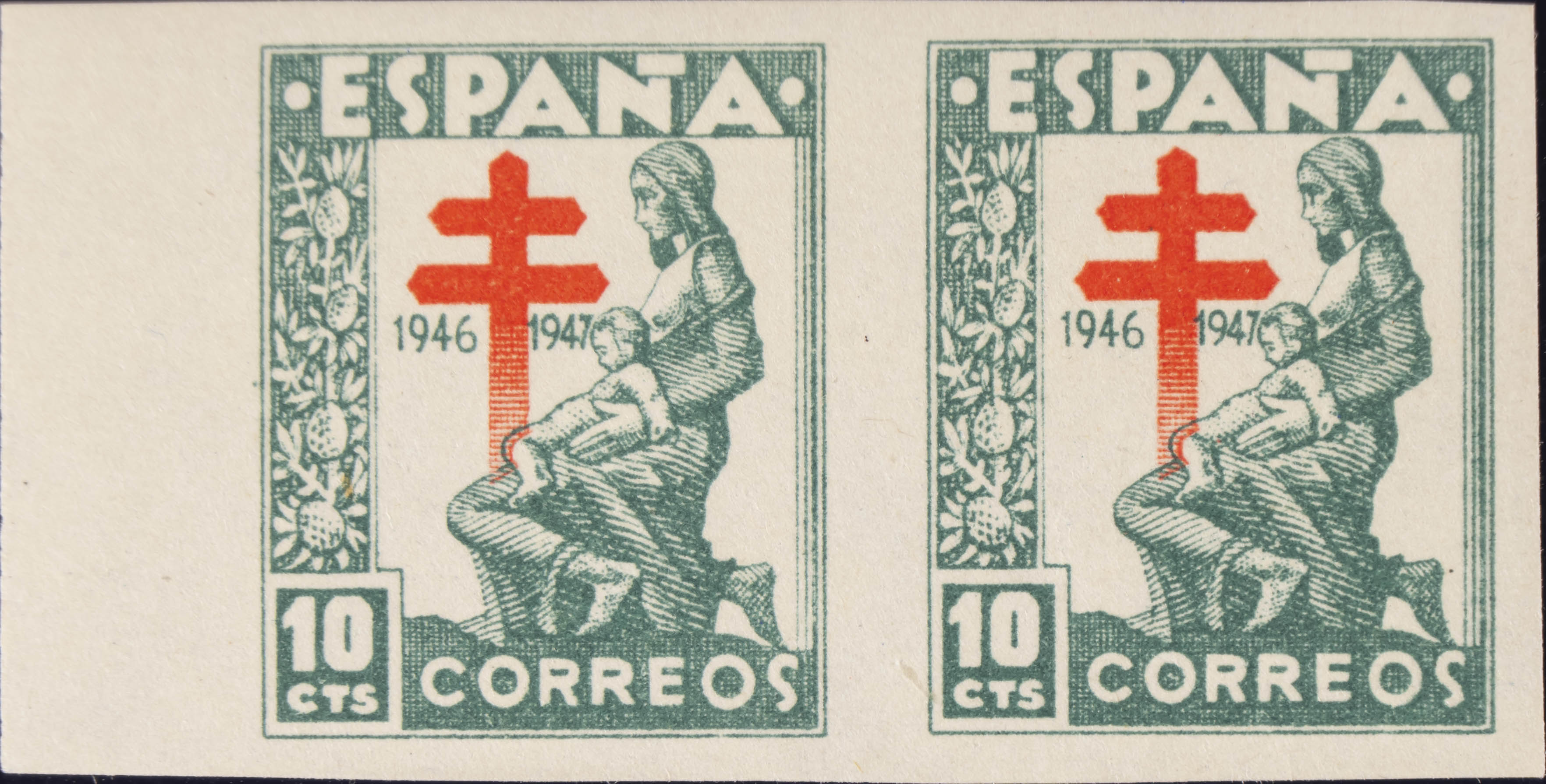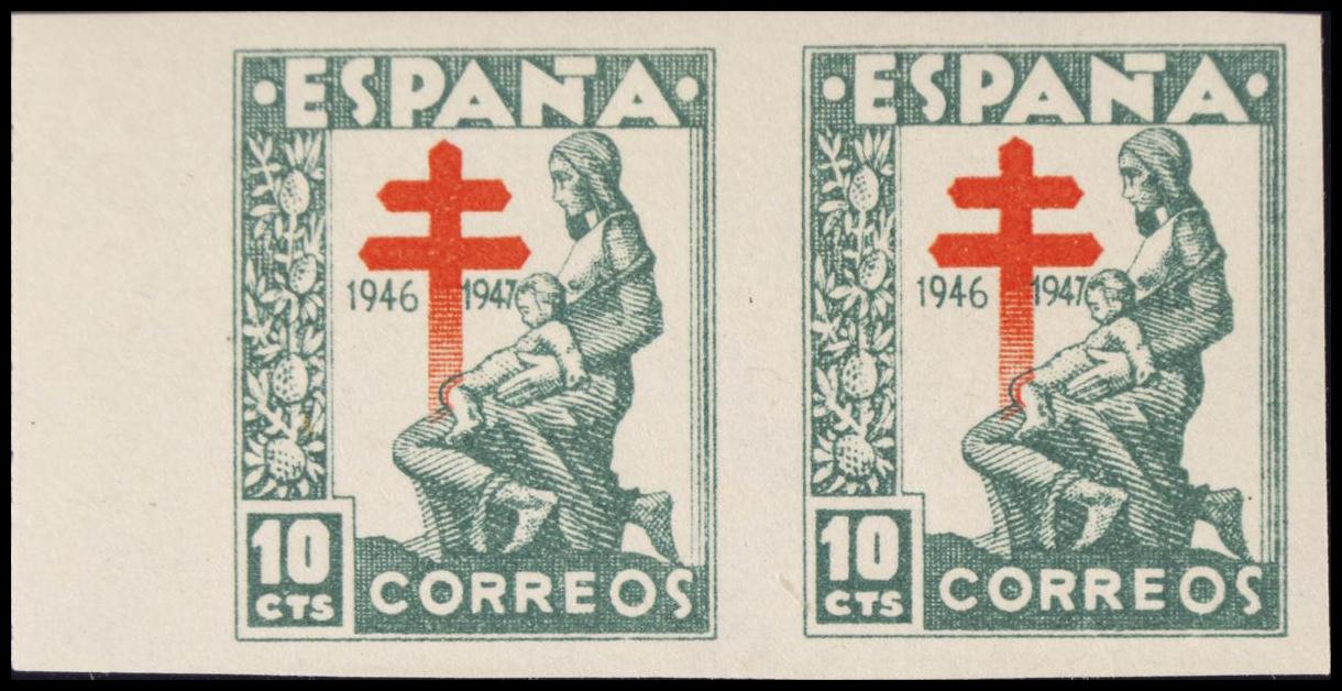 ★ 1009s(2). 1946. 10 cts verde, pareja. SIN DENTAR. MAGNIFICA. Edifil 2020: +10,4 Euros