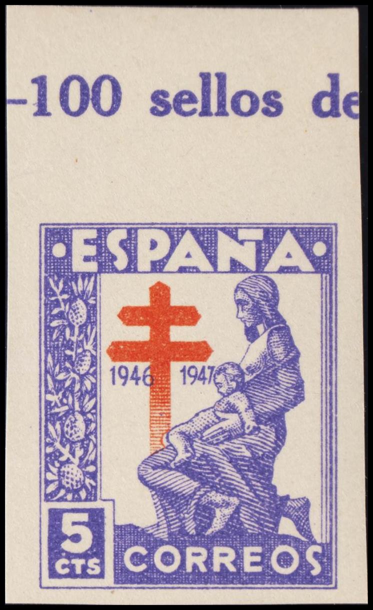 ★★ 1008s. 1946. 5 cts violeta, borde de hoja. SIN DENTAR. MAGNIFICO. Edifil 2020: 8,5 Euros