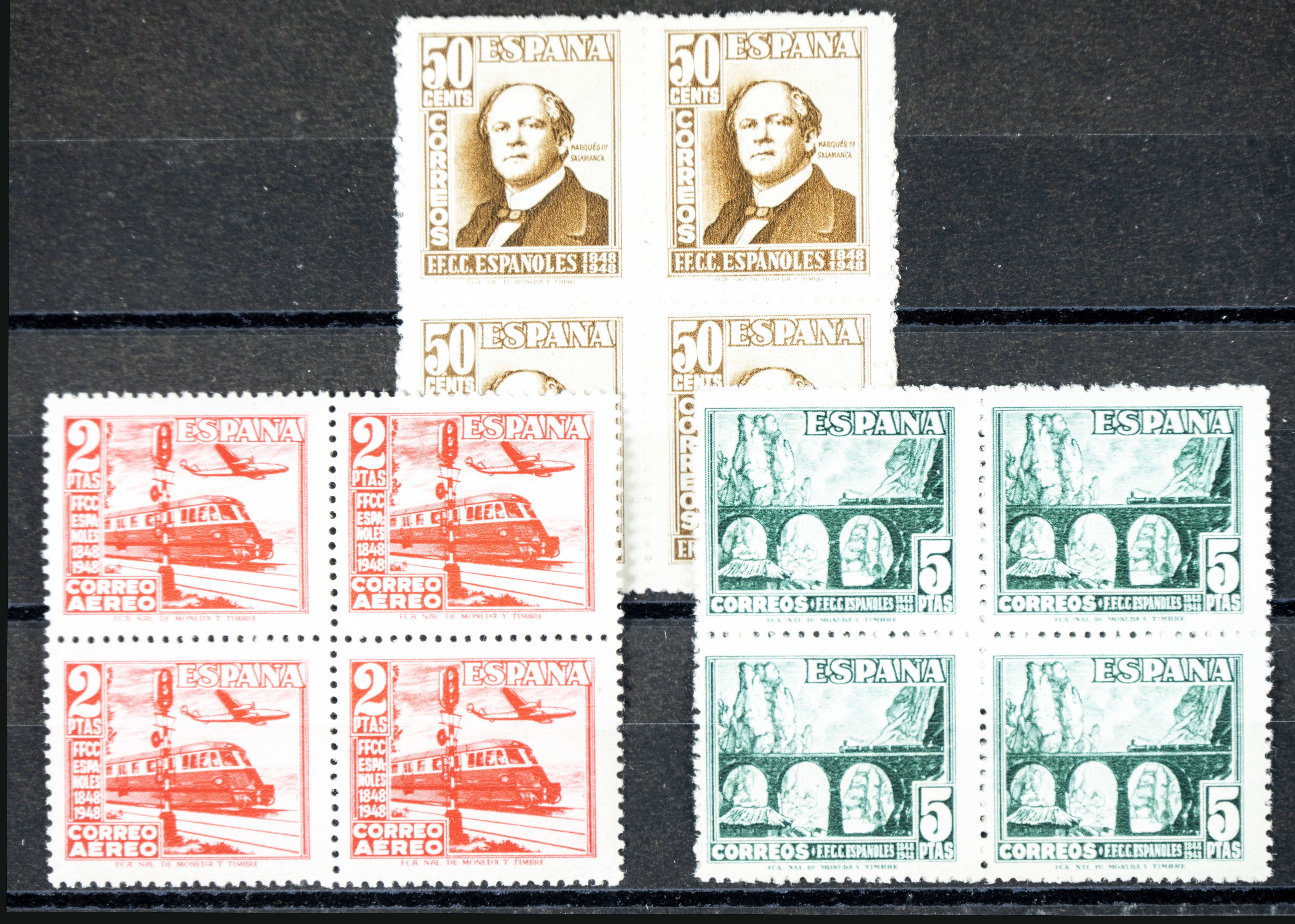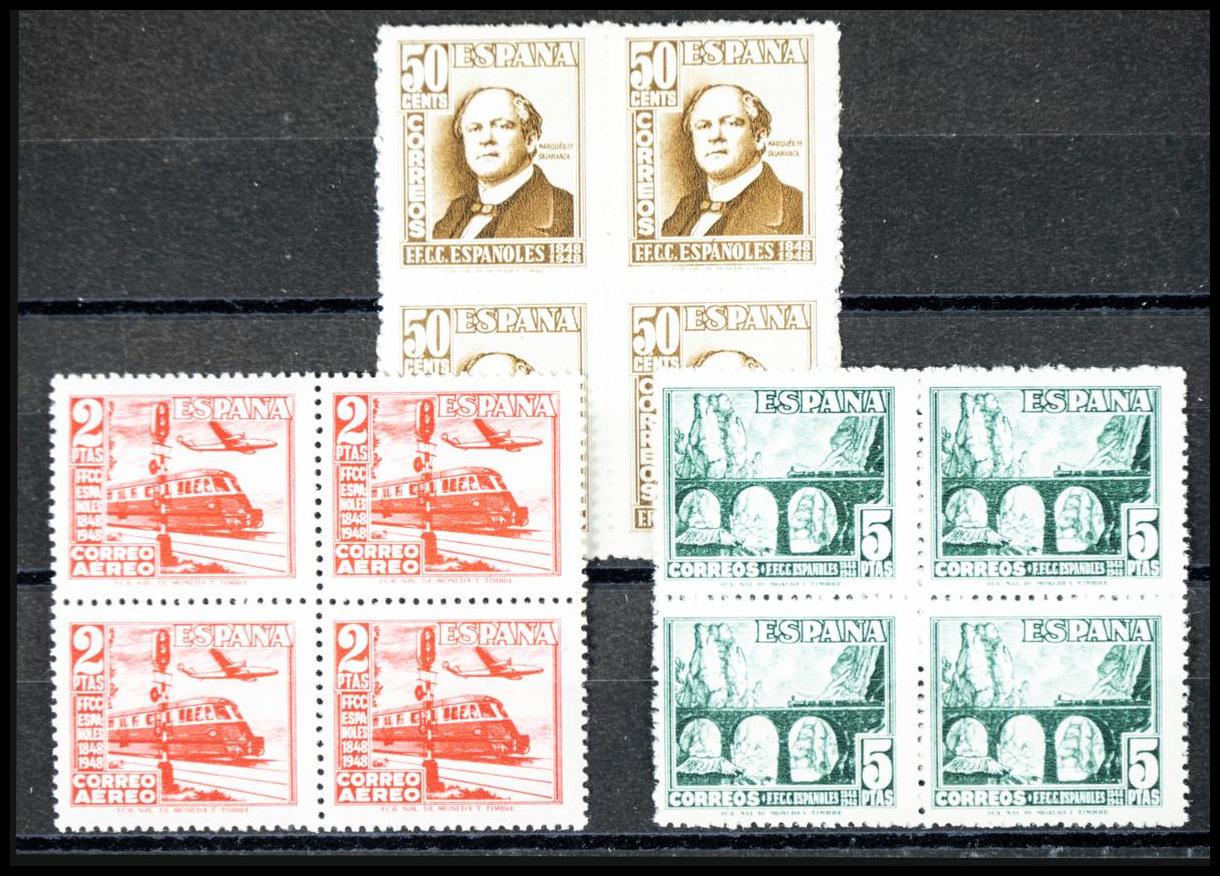 ★★ 1037/39(4). 1948. Serie completa, bloque de cuatro. MAGNIFICA. Edifil 2020: +50 Euros