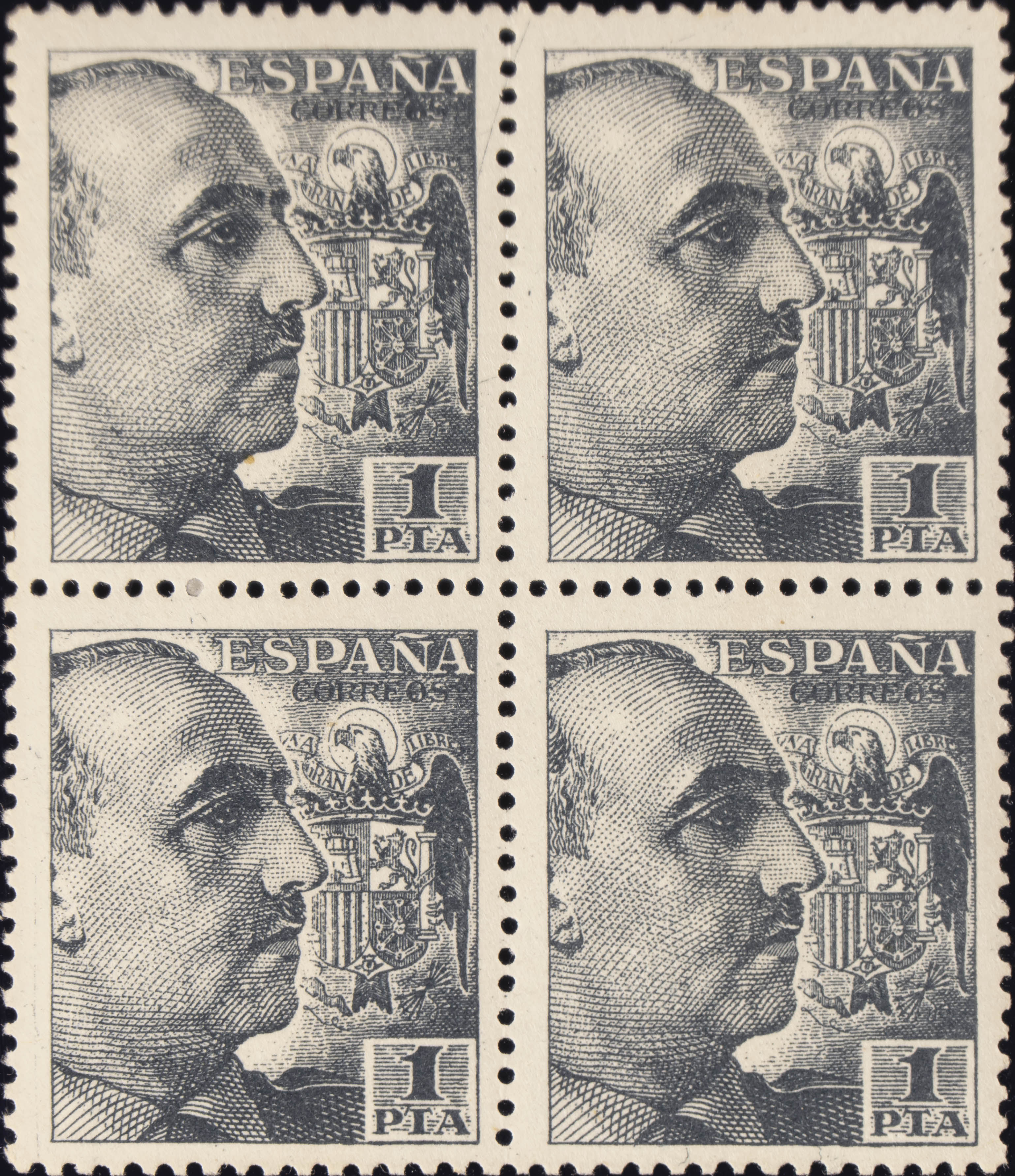 ★★ 1056(4). 1951. 1 pts negro, bloque de cuatro. MAGNIFICO. Edifil 2020: +52 Euros