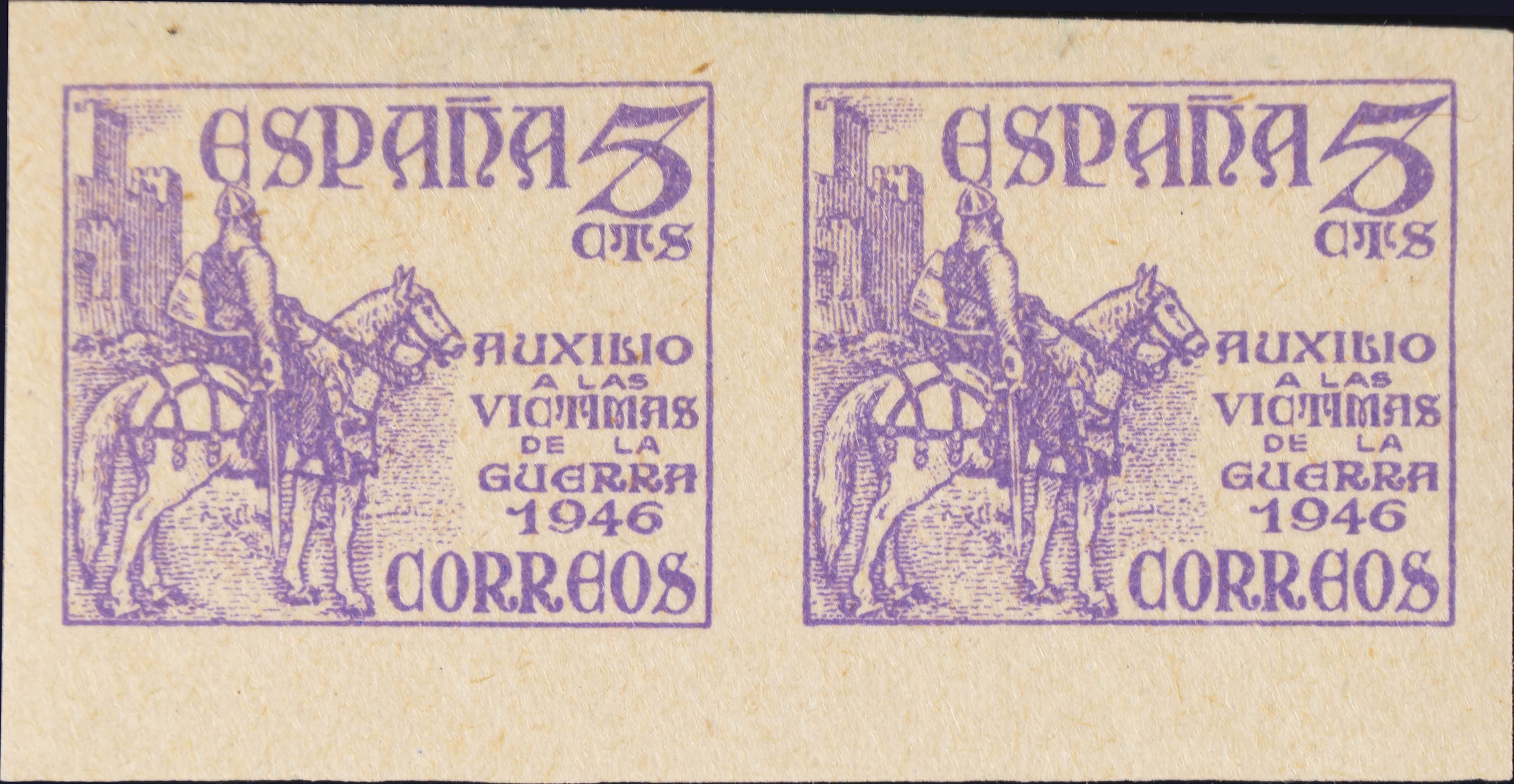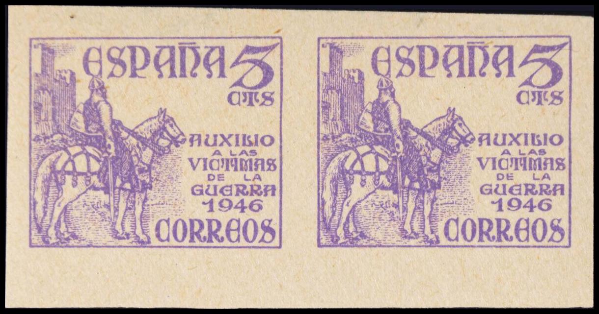 ★★ 1062s(2). 1949. 5 cts violeta, pareja. SIN DENTAR. MAGNIFICA. Edifil 2020: +66 Euros