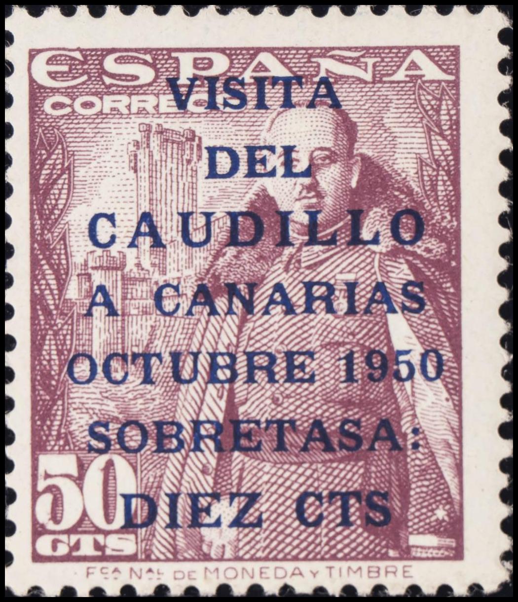 ★ 1088. 1951. +10 cts sobre 50 cts lila oscuro. MAGNIFICO. Edifil 2020: 50 Euros
