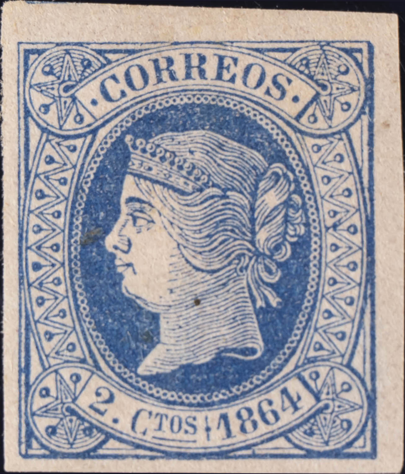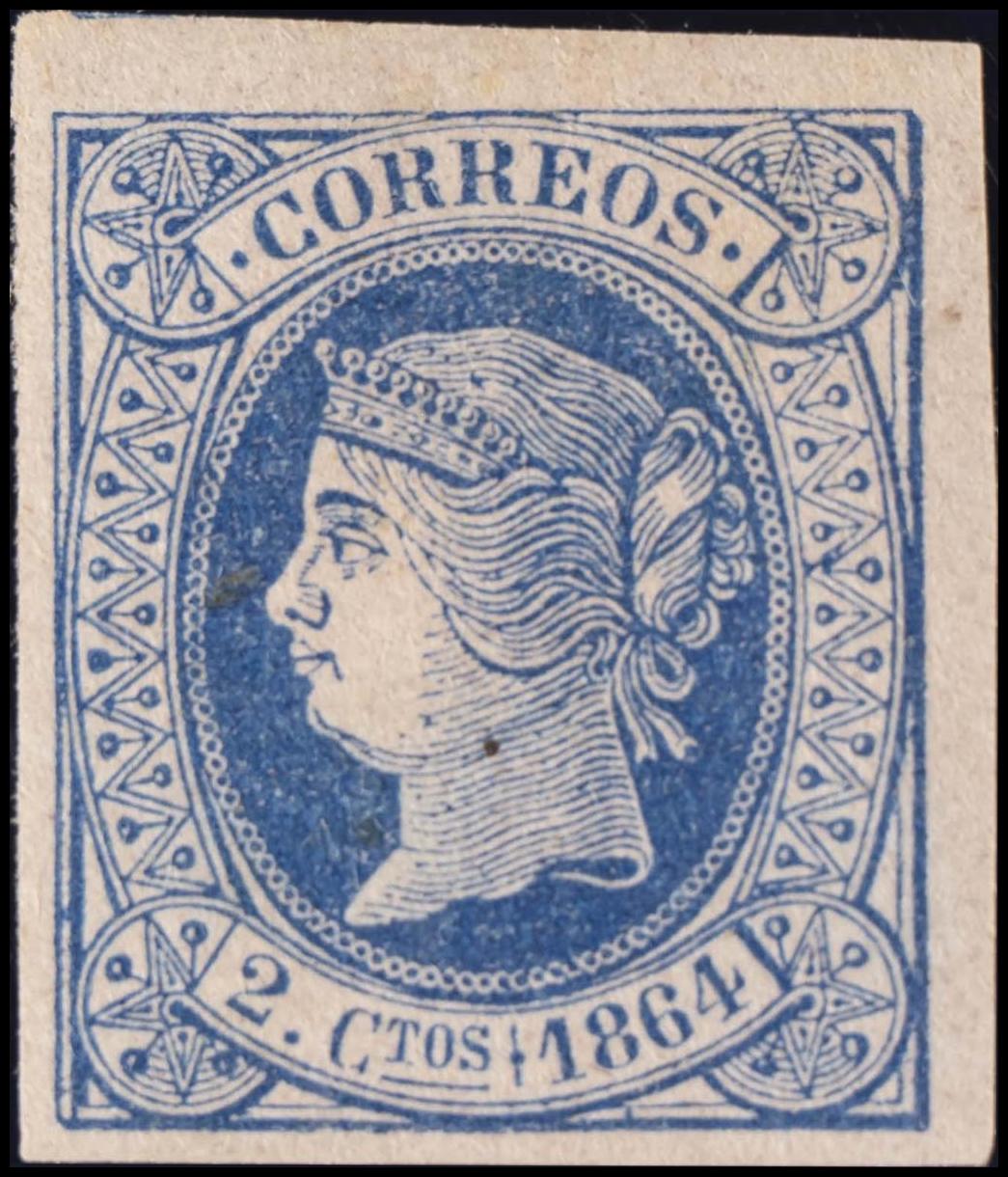★ 63. 1864. 2 cuartos azul. MAGNIFICO. Edifil 2020: 70 Euros