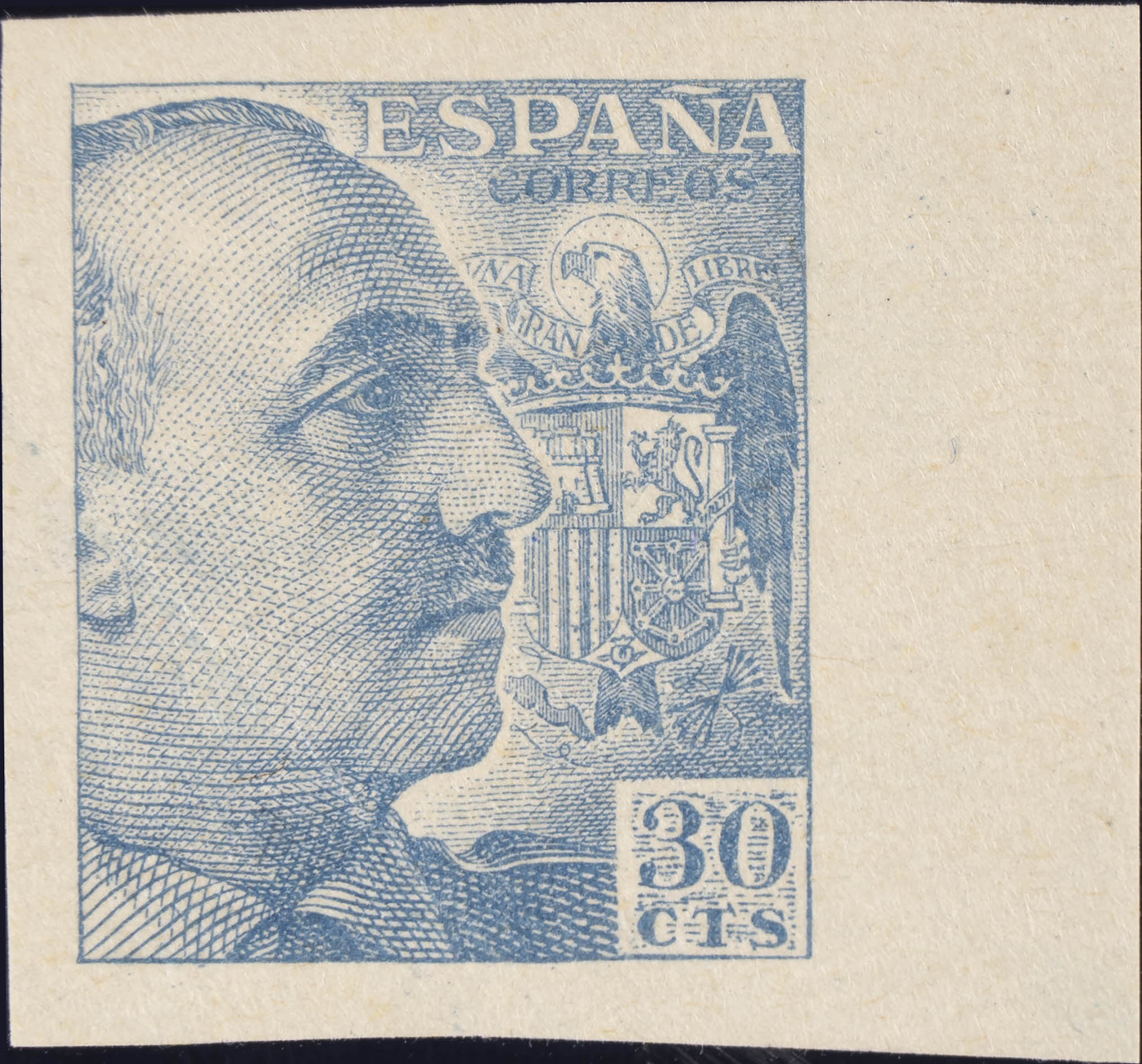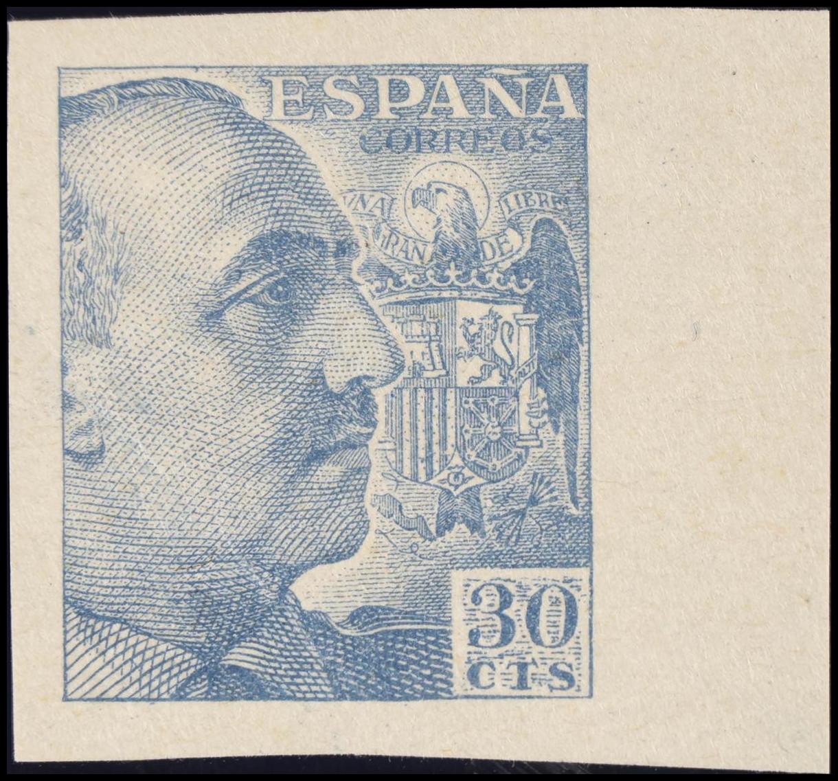 ★ 924s. 1940. 30 cts azul claro, borde de hoja. SIN DENTAR. MAGNIFICO. Edifil 2020: +16,75 Euros