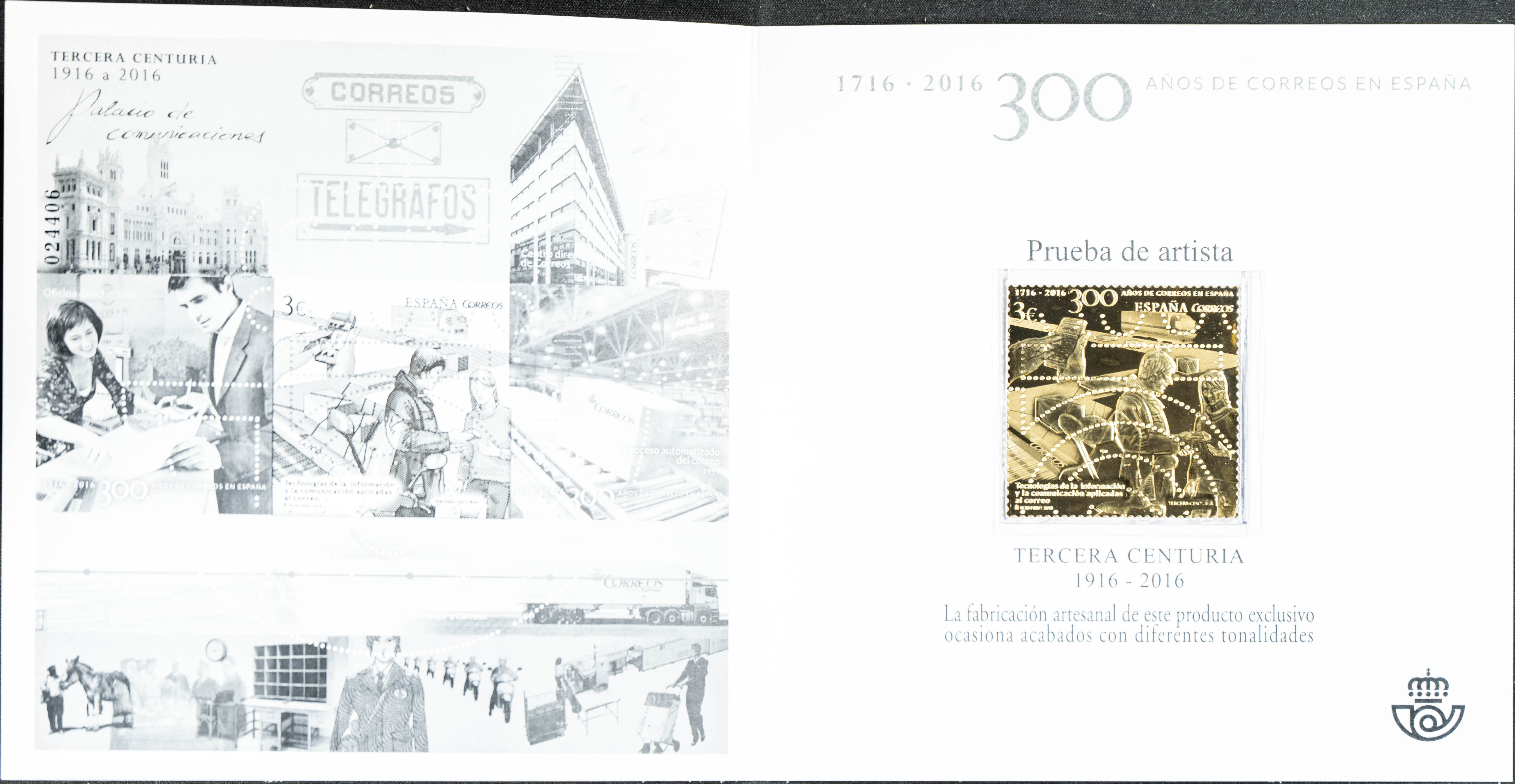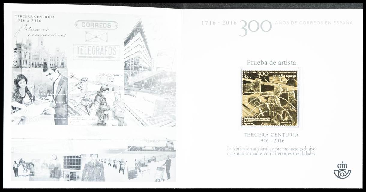 ★★ 128P. 2016. Prueba de Lujo. 300 AÑOS DE CORREOS EN ESPAÑA (con sello de oro). MAGNIFICA. Edifil 2020: 36 Euros