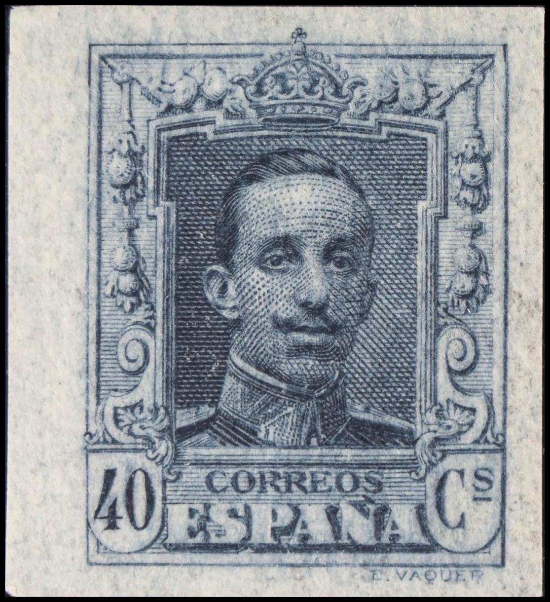 ★★ 319s. 1922. 40 cts azul pizarra, borde de hoja. SIN DENTAR. MAGNIFICO. Edifil 2020: +66 Euros
