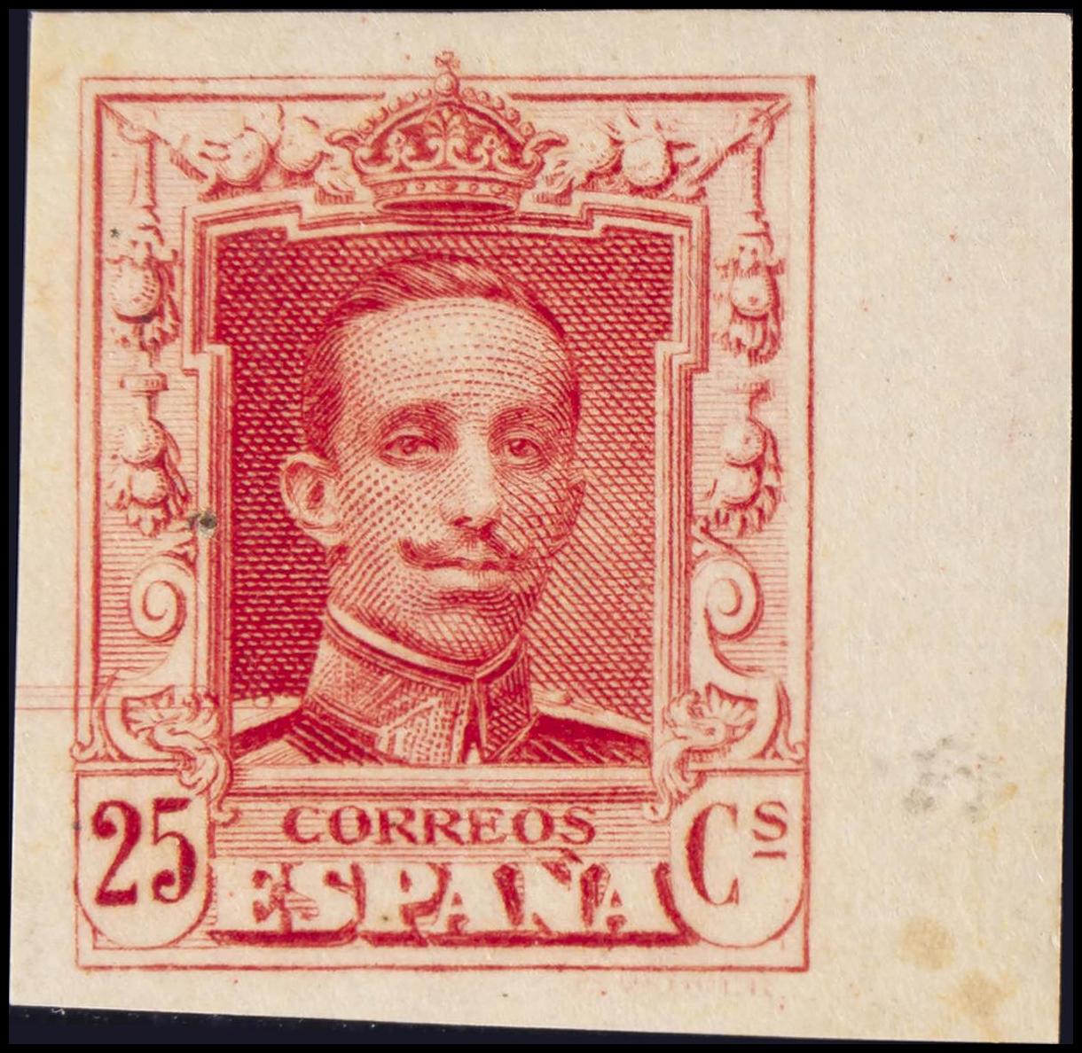 ★★ 317s. 1922. 25 cts rojo, borde de hoja. SIN DENTAR. MAGNIFICO. Edifil 2020: +22 Euros