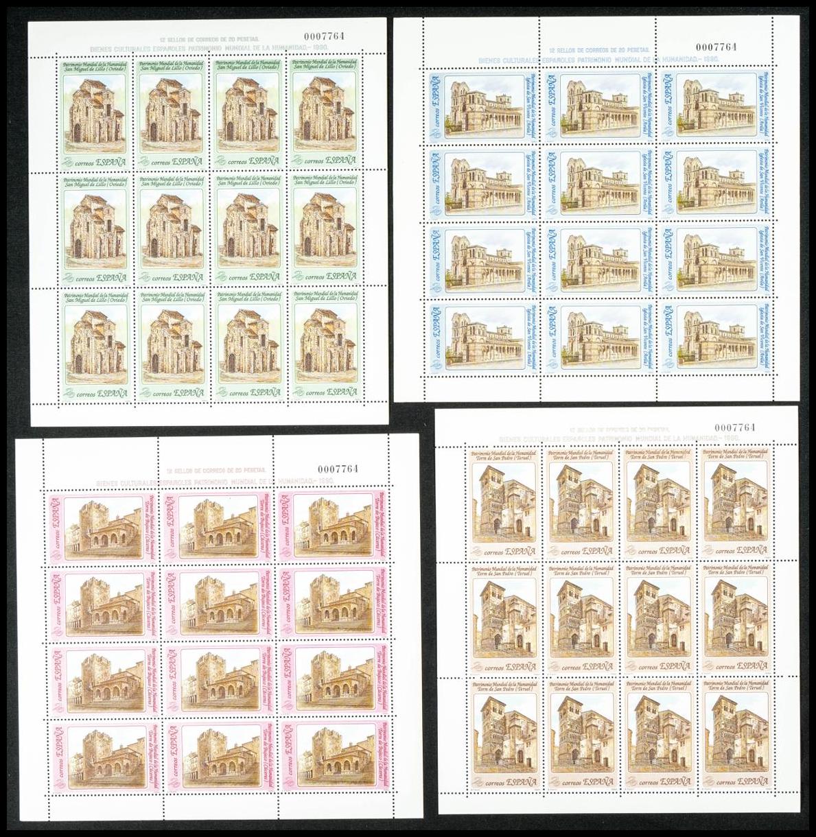 ★★ MP20/23. 1990. Serie completa en minipliegos de doce sellos. PATRIMONIO DE LA HUMANIDAD. MAGNIFICOS. Edifil 2020: 12 Euros
