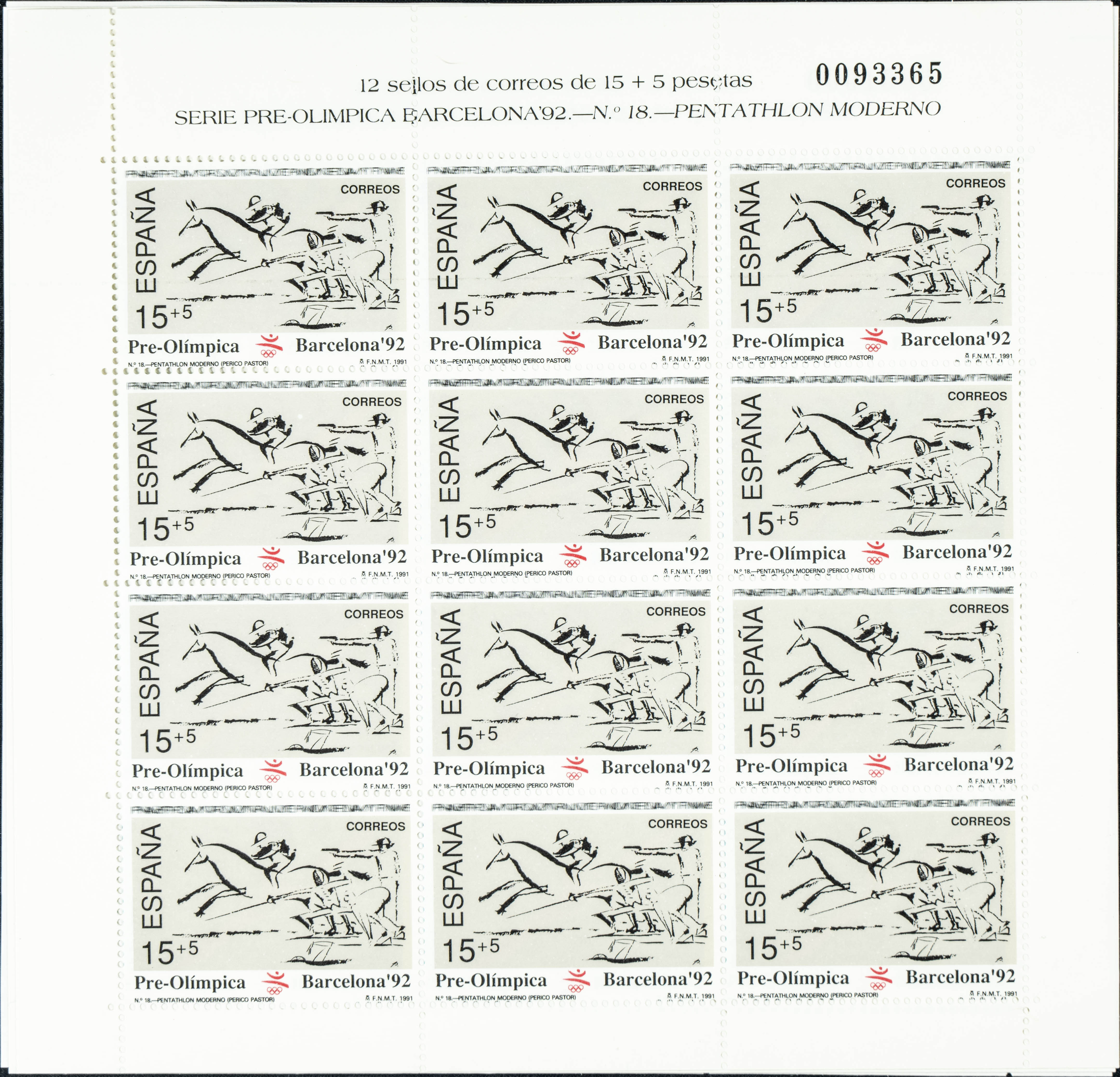 ★★ MP28/30. 1991. Serie completa en minipliegos de doce sellos. BARCELONA 92. MAGNIFICOS. Edifil 2020: 18,6 Euros