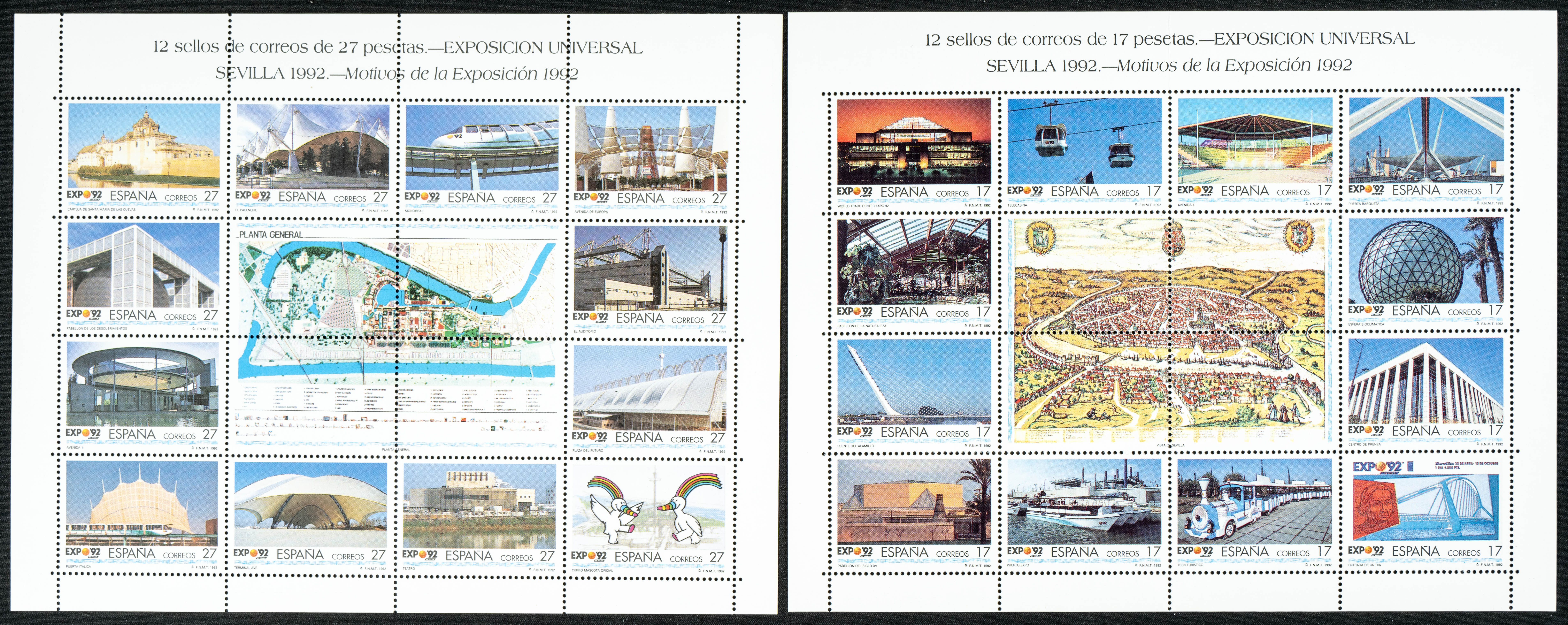 ★★ MP42A/B. 1992. Serie completa en dos minipliegos. EXPO 92. MAGNIFICOS. Edifil 2020: 11,5 Euros