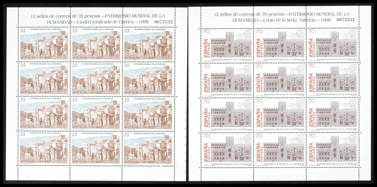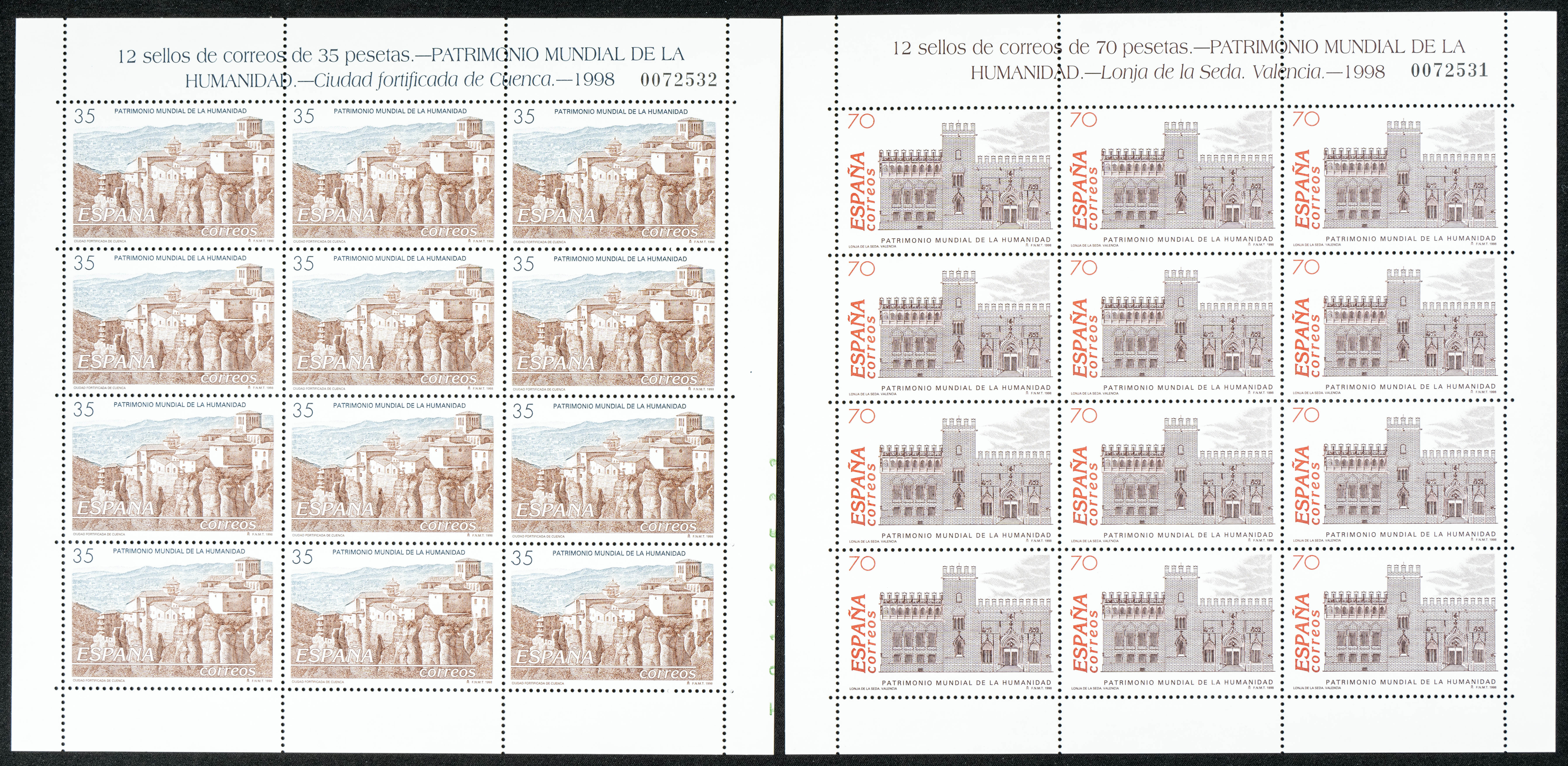 ★★ MP60/61. 1998. Serie completa en minipliegos de doce sellos. PATRIMONIO DE LA HUMANIDAD. MAGNIFICOS. Edifil 2020: 35 Euros