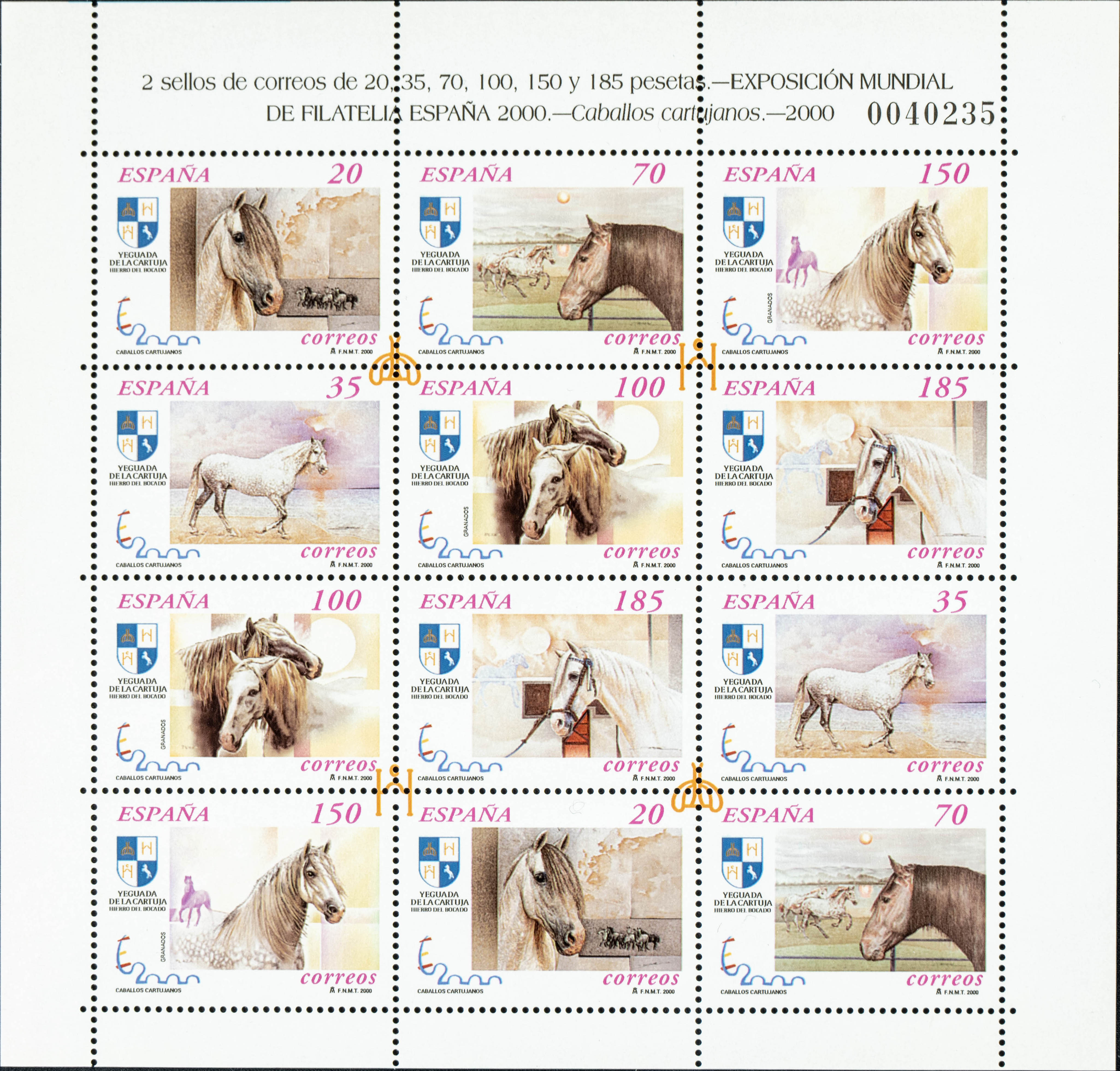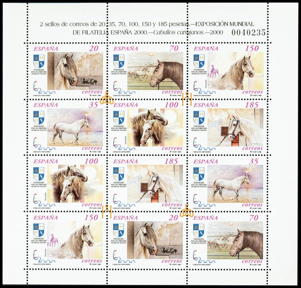 ★★ MP69. 2000. Serie completa en minipliego de doce sellos. ESPAÑA 2000, CABALLOS III. MAGNIFICO. Edifil 2020: 58 Euros