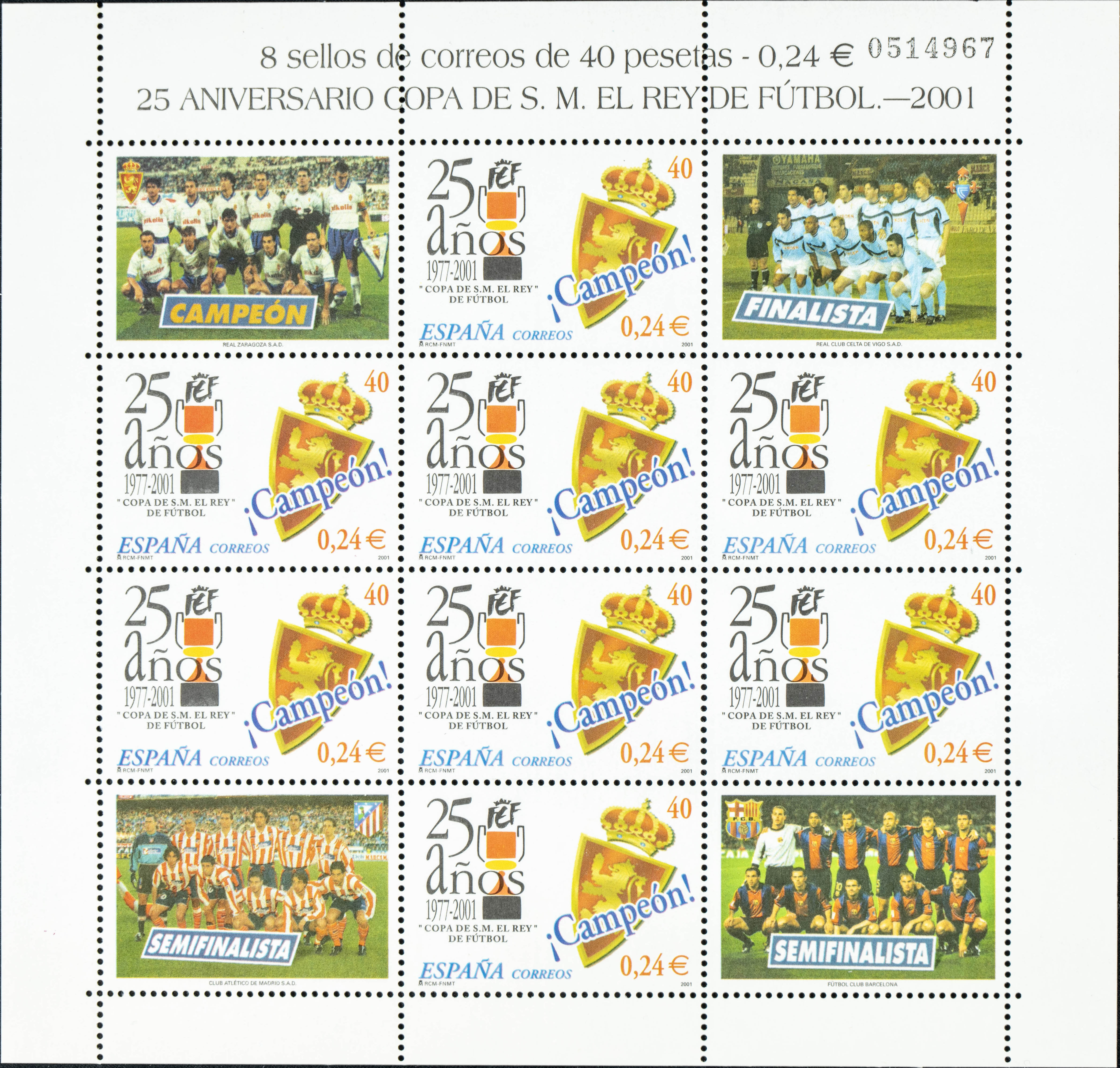 ★★ MP75. 2000. 0´24 Euros multicolor, minipliego de ocho sellos. COPA DEL REY. MAGNIFICO. Edifil 2020: 4,8 Euros