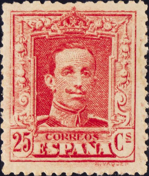★★ 317A. 1922. 25 cts rojo (Tipo II). MAGNIFICO. Edifil 2020: 17 Euros