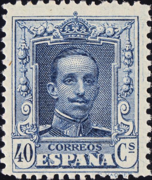 ★★ 319s. 1922. 40 cts azul pizarra, borde de hoja. SIN DENTAR. MAGNIFICO. Edifil 2020: +66 Euros