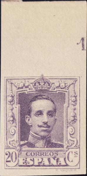★★ 316s. 1922. 20 cts lila, borde de hoja. SIN DENTAR. MAGNIFICO. Edifil 2020: +42 Euros