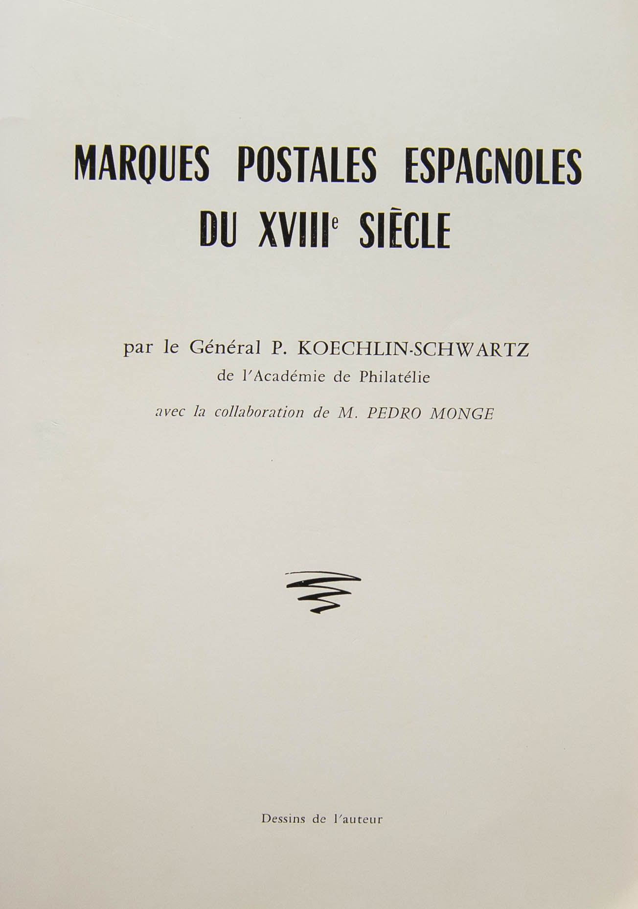 1967. MARQUES POSTALES ESPAGNOLES DU XVIII SIECLE. P.Koechlin-Schwartz y Pedro Monge. ParÃs, 1967.