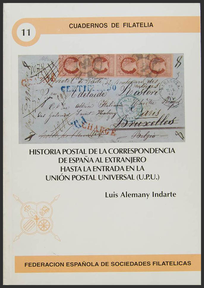 1999. HISTORIA POSTAL DE LA CORRESPONDENCIA DE ESPAÑA AL EXTRANJERO HASTA LA ENTRADA EN LA UNION POSTAL UNIVERSAL (U.P.U). Luis Alemany Indarte. Federación Española de Sociedades Filatélicas. Cuadernos de Filatelia Nº11. Madrid, 1999.