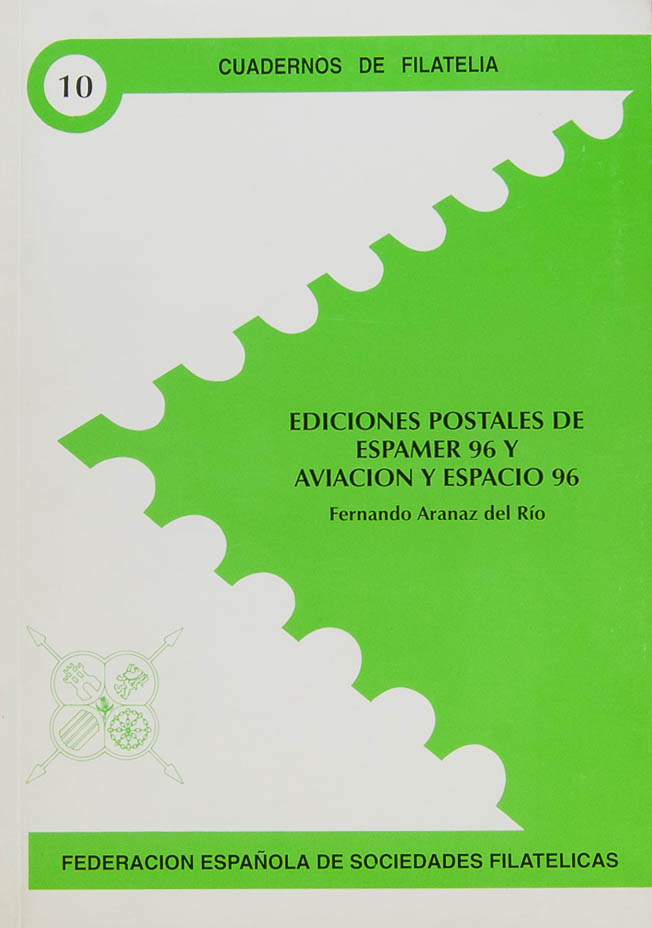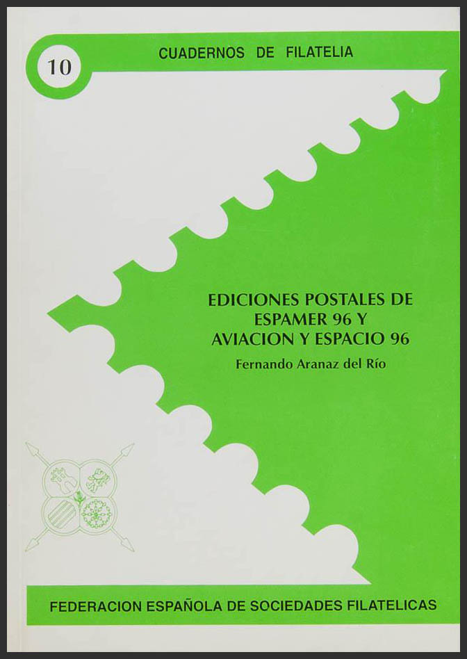 1997. EDICIONES POSTALES DE ESPAMER 96 Y AVIACION Y ESPACIO 96. Fernando Aranaz del Río. Fedearción Española de Sociedades Filatélicas. Cuadernos de Filatelia Nº10. Madrid, 1997.