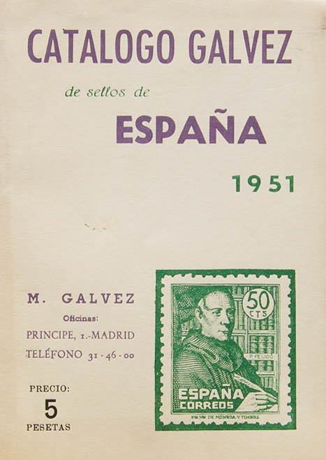 1951. CATALOGO GALVEZ DE SELLOS DE ESPAÑA 1951. Manuel Gálvez. Madrid, 1951.
