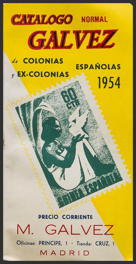 1954. CATALOGO NORMAL GALVEZ DE COLONIAS Y EX-COLONIAS ESPAÑOLAS 1954. M. Gálvez. Madrid, 1954. (ejemplar nuevo, rarÃsimo asÃ, para bibliógrafo)