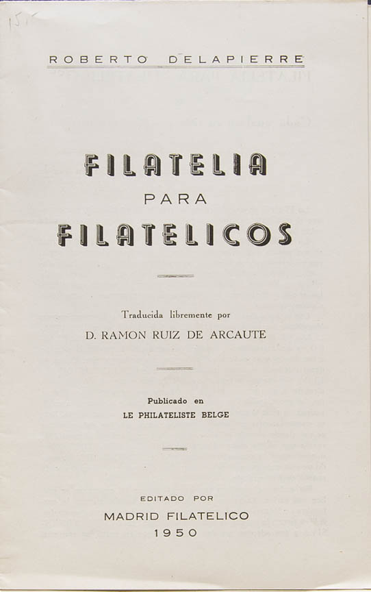 1950. FILATELIA PARA FILATELICOS. Roberto Delapierre. Editado por Madrid Filatélico, 1950. (rarÃsimo)