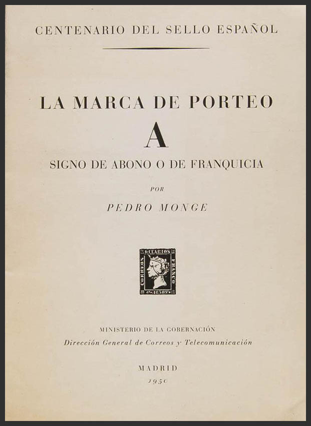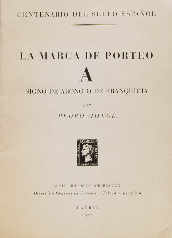 1950. LA MARCA DE PORTEO "A" SIGNO DE ABONO O DE FRANQUICIA. Pedro Monge. Madrid, 1950.