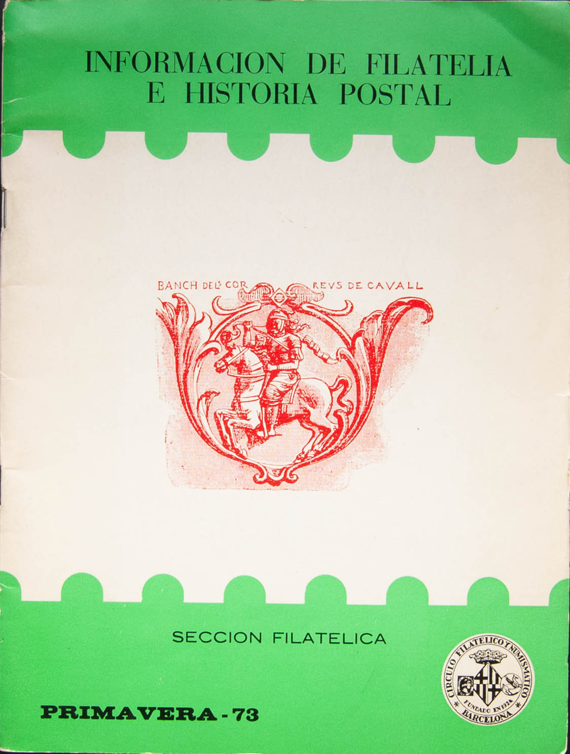 1973. INFORMACION DE FILATELIA E HISTORIA POSTAL (muchos artÃculos de un gran interés postal). Publica CÃrculo Filatélico y Numismático de Barcelona, 1973.