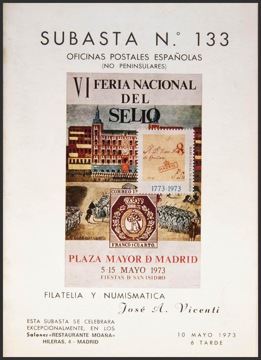 1973. SUBASTA Nº133, COLONIAS ESPAÑOLAS. José A.Vicenti. Madrid, 1973.