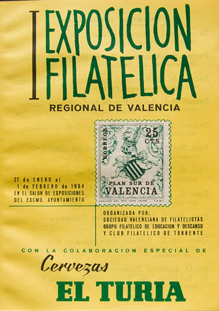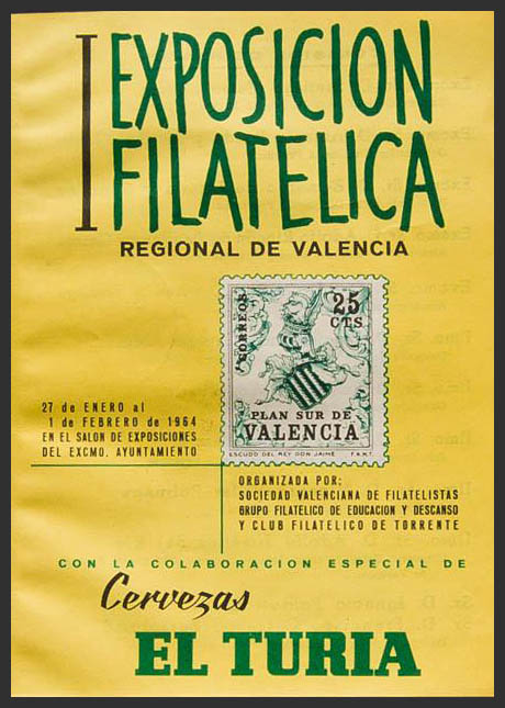 1964. Catálogo de la I EXPOSICION FILATELICA REGIONAL DE VALENCIA, celebrada del 27 de Enero al 1 de Febrero de 1964. Organizada por la Sociedad Valenciana. MAGNIFICO Y RARO.