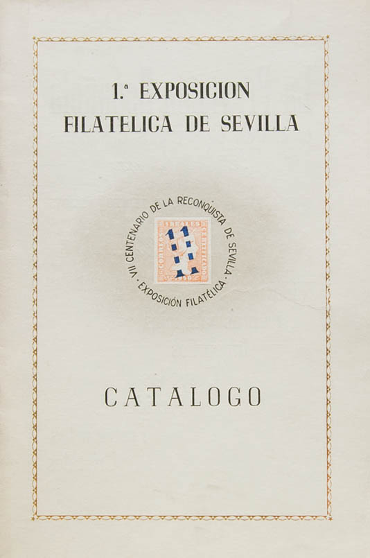 1948. Catálogo de la 1ª EXPOSICION FILATELICA DE SEVILLA, celebrada del 20 al 28 de Noviembre de 1948. Organizada por la Sociedad Filatelica Sevillana. Sevilla, 1948. MAGNIFICO Y ESPECTACULAR.