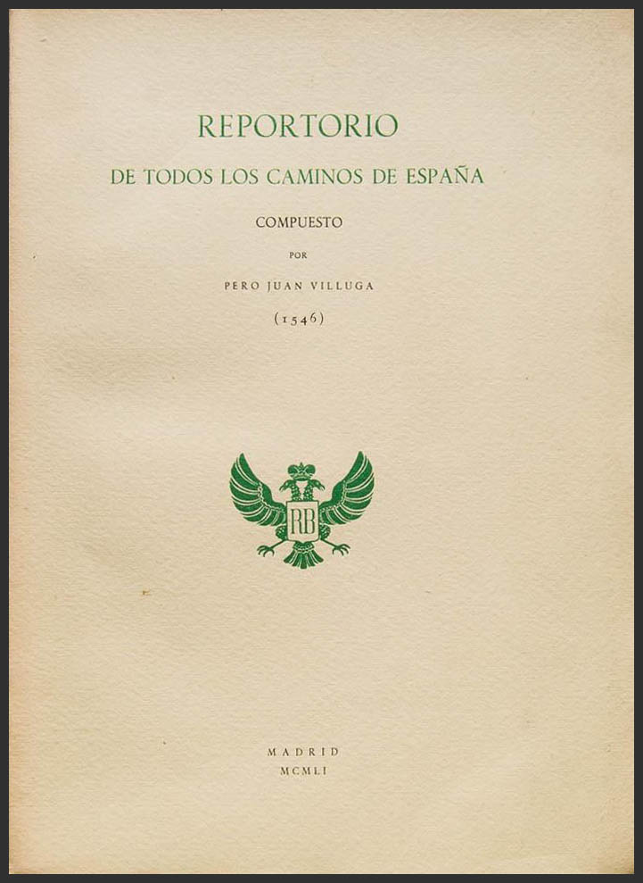 1951. Reedición del REPORTORIO DE TODOS LOS CAMINOS DE ESPAÑA, compuesto por Pero Juan Villuga en 1546. Madrid, 1951.