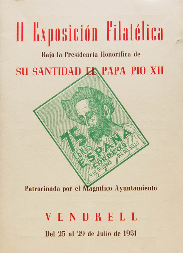 1951. Catálogo de la II EXPOSICION FILATELICA, celebrada bajo la presidencia honorífica de Su Santidad el Papa Pío XII del 25 al 29 de Julio de 1951. Organiza el Ayuntamiento de Vendrell. Vendrell, 1951.