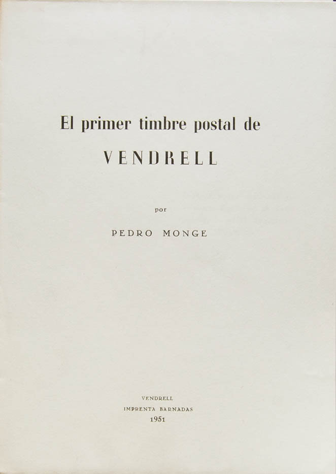 1951. EL PRIMER TIMBRE POSTAL DE VENDRELL. Pedro Monge. Vendrell, 1951.