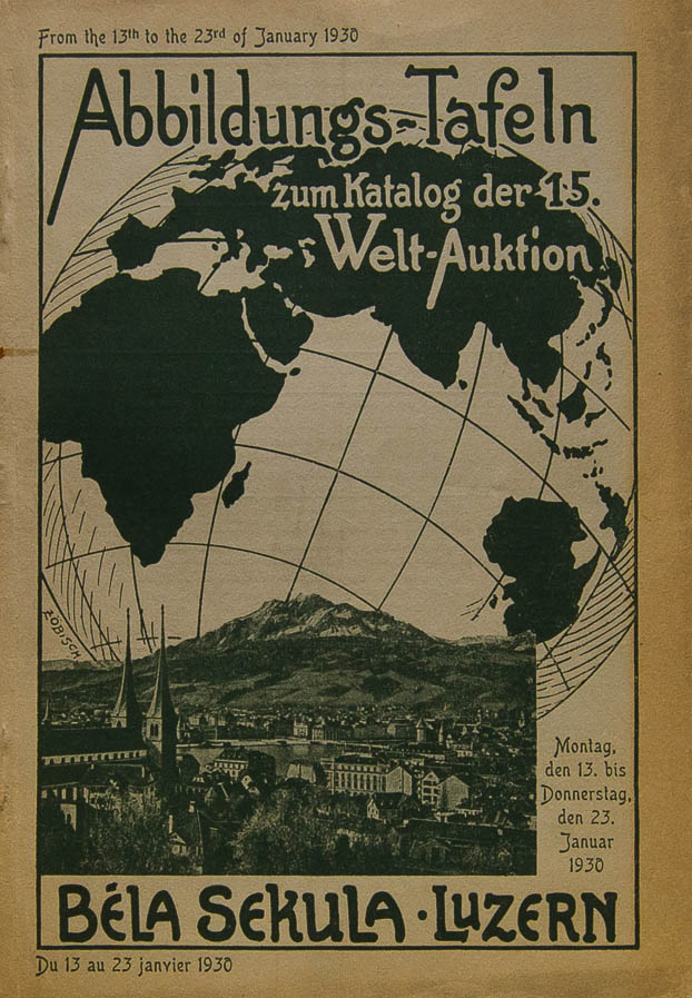 1930. Catálogo subasta ABBILDUNGS-TAFELN, WELT-AUKTION, celebrada desde el 13 al 23 de Enero de 1930. Bela Sekula. Lucerna, 1930. (impresionante colección de España y Colonias, con muchas piezas de enorme interés)