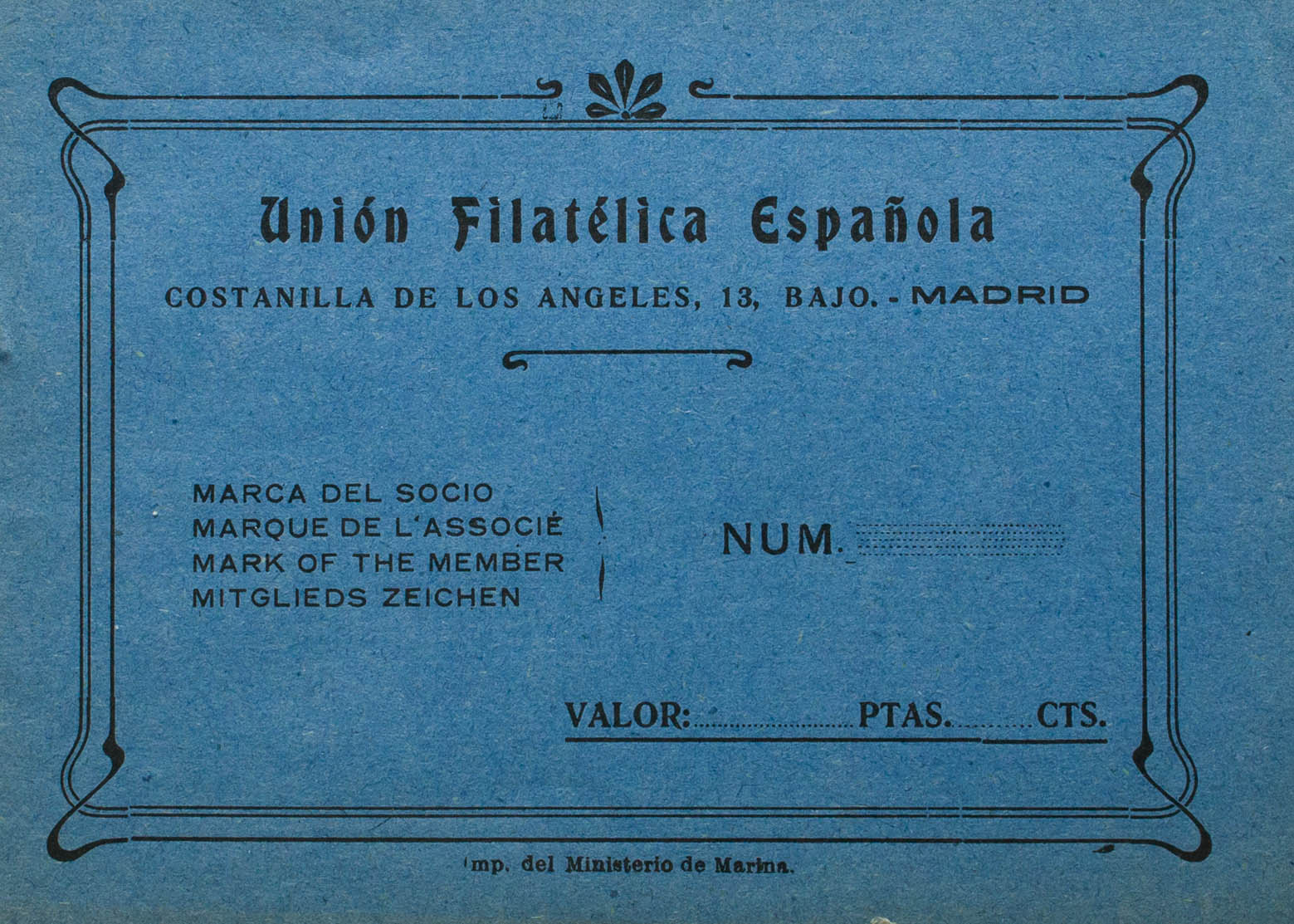 (1920ca). Libreta de principios de siglo XX (sin utilizar), para sellos usados editado por Unión Filatélica Española. MAGNIFICA E INUSUAL.