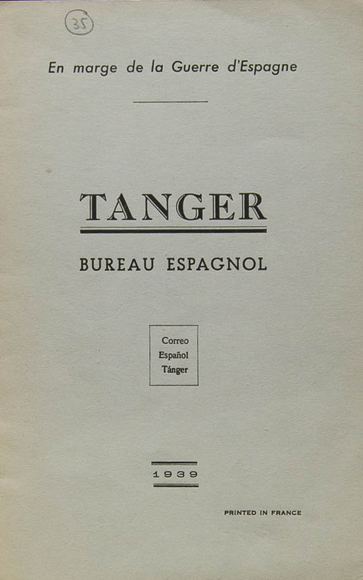 1939. TANGER BUREAU ESPAGNOL EN MARGE DE LA GUERRE D´ESPAGNE. Yvert and Cº. Amiens, 1939.