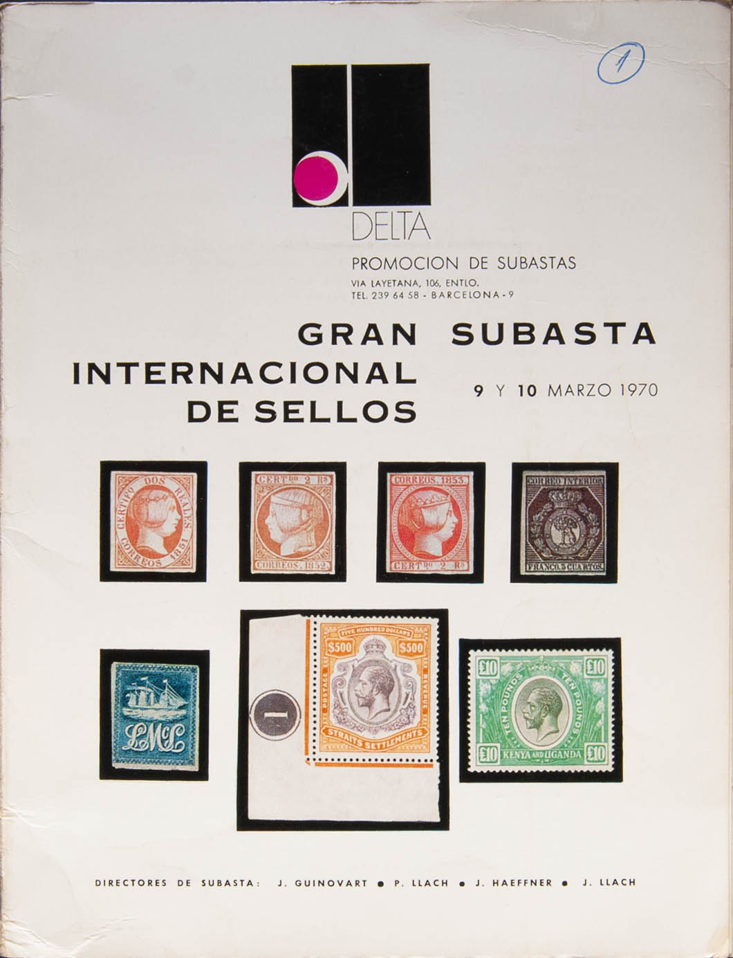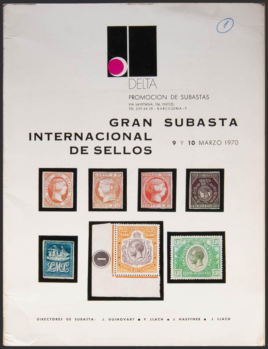 1970. Catálogo de subasta de Filatelia Internacional organizada por Delta del 9 al 10 de Marzo de 1970 (Nº1). Barcelona, 1970.