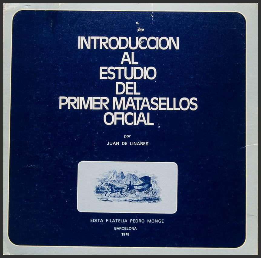 1978. INTRODUCCION AL ESTUDIO DEL PRIMER MATASELLOS OFICIAL. Juan de Linares. Edita Filatelia Pedro Monge. Barcelona, 1978.