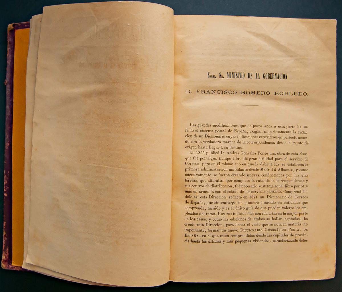 1880. DICCIONARIO GEOGRAFICO POSTAL DE ESPAÑA. Editado por la Dirección General de Correos y Telégrafos. Madrid, 1880.