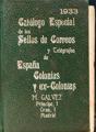 1933. CATALOGO ESPECIAL GALVEZ DE LOS SELLOS DE CORREOS Y TELEGRAFOS DE ESPAÑA COLONIAS Y EXCOLONIAS EMITIDOS DESDE 1850 A 1932. Miguel Gálvez. Madrid, 1933. (muy raro, fatigado)