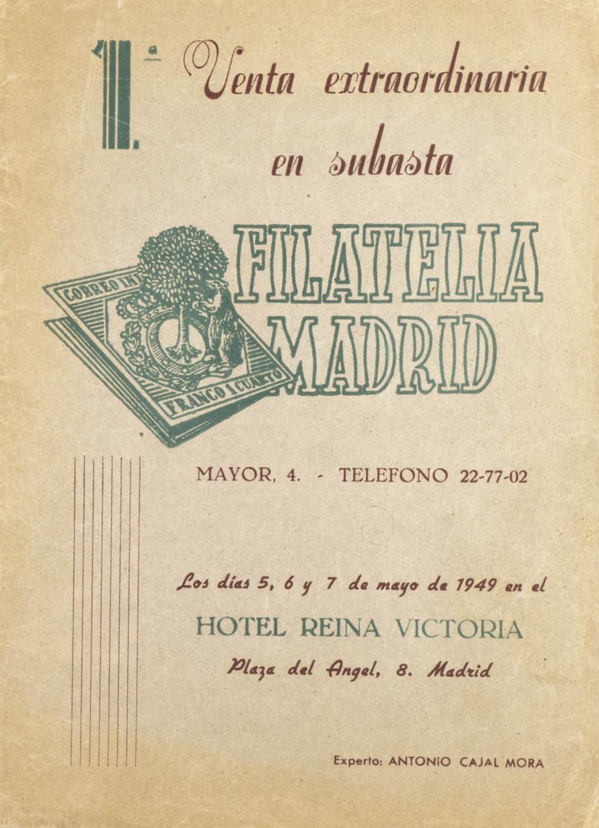 1949. FILATELIA MADRID. 1ª VENTA EXTRAORDINARIA EN SUBASTA. Mayo de 1949. (muy buena conservación). RARISIMO EJEMPLAR.