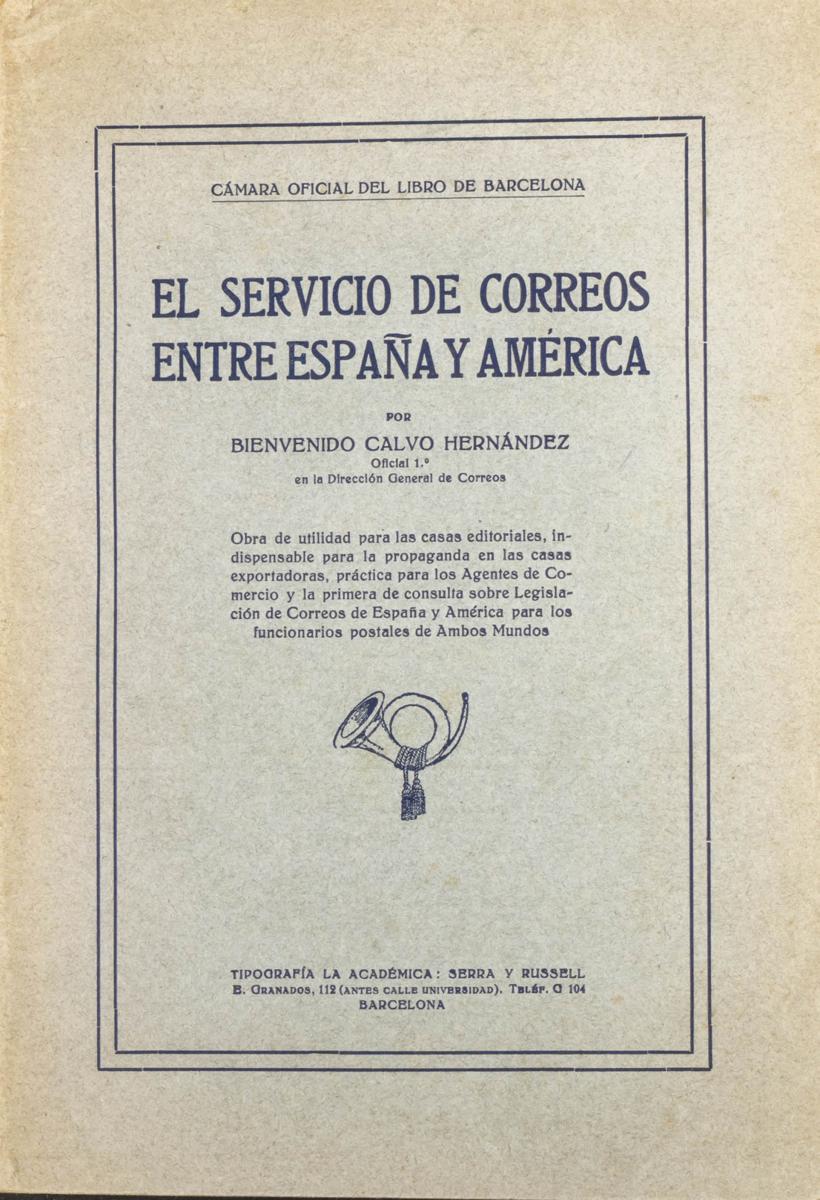 1916. EL SERVICIO DE CORREOS ENTRE ESPAÑA Y AMERICA. Bienvenido Calvo Hernández. Cámara Oficial del Libro de Barcelona. Barcelona, 1916.