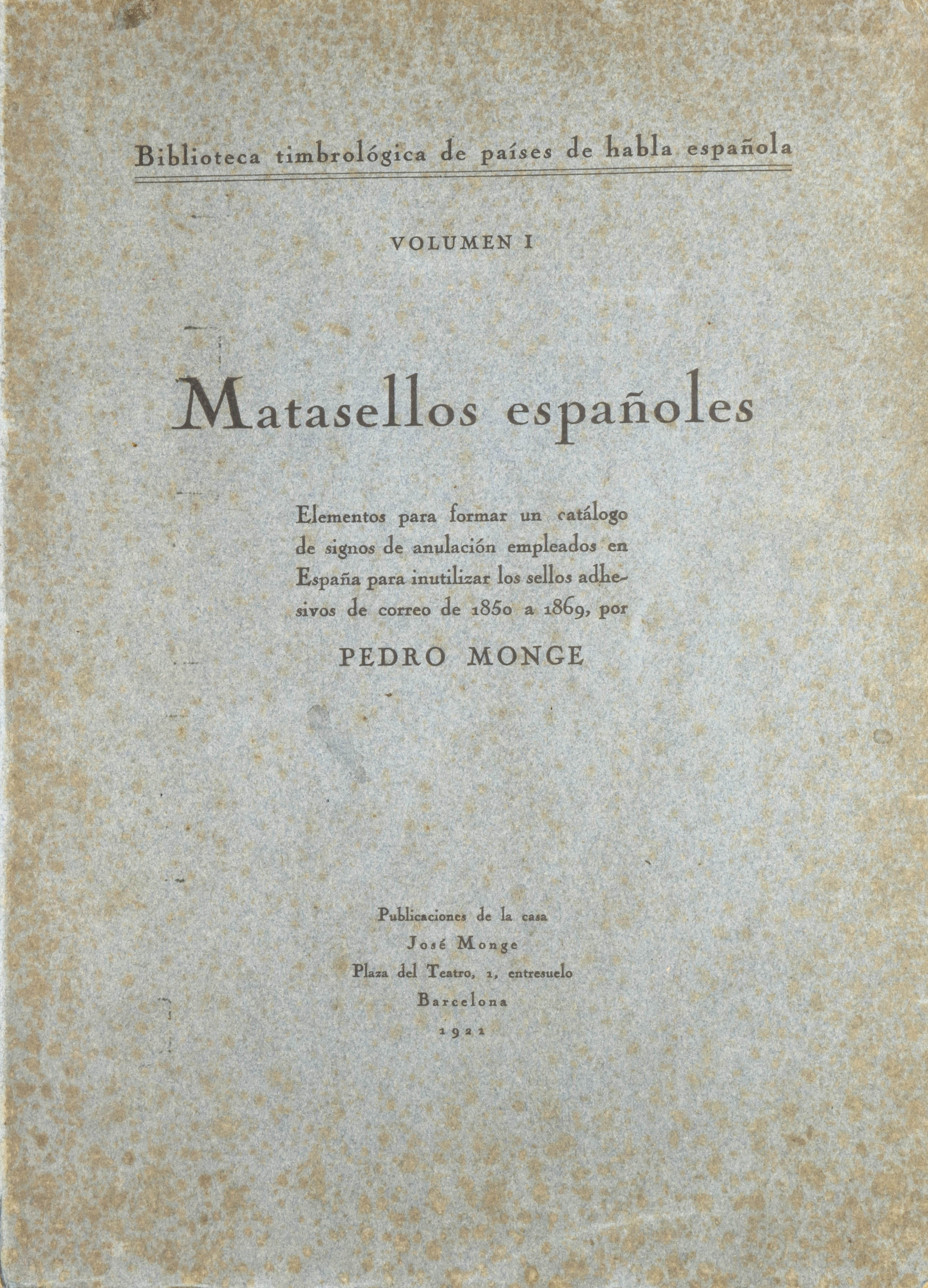 1921. MATASELLOS ESPAÑOLES, volumen I. Pedro Monge. Barcelona, 1921.